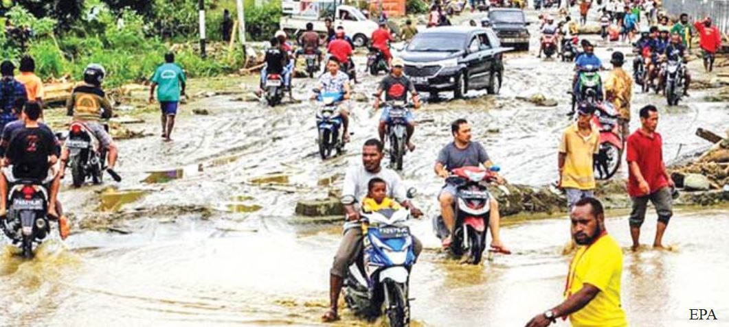 အင်ဒိုနီးရှားနိုင်ငံ၏ အရှေ့ဘက်အကျဆုံး ပါပူရာပြည်နယ်တွင် မတ် ၁၆ ရက ညပိုင်းက ရုတ်တရက် ရေကြီးရေလျှံမှုကြောင့် ၆၃ ဦး သေဆုံးပြီး အများအပြား ဒဏ်ရာရခဲ့သည်ဟု ဒေသခံဘေးအန္တရာယ်ဆိုင်ရာ လှုပ်ရှားမှုအဖွဲ့ တာဝန်ရှ သူတစ်ဦးက ယနေ့ပြောကြားသည်။