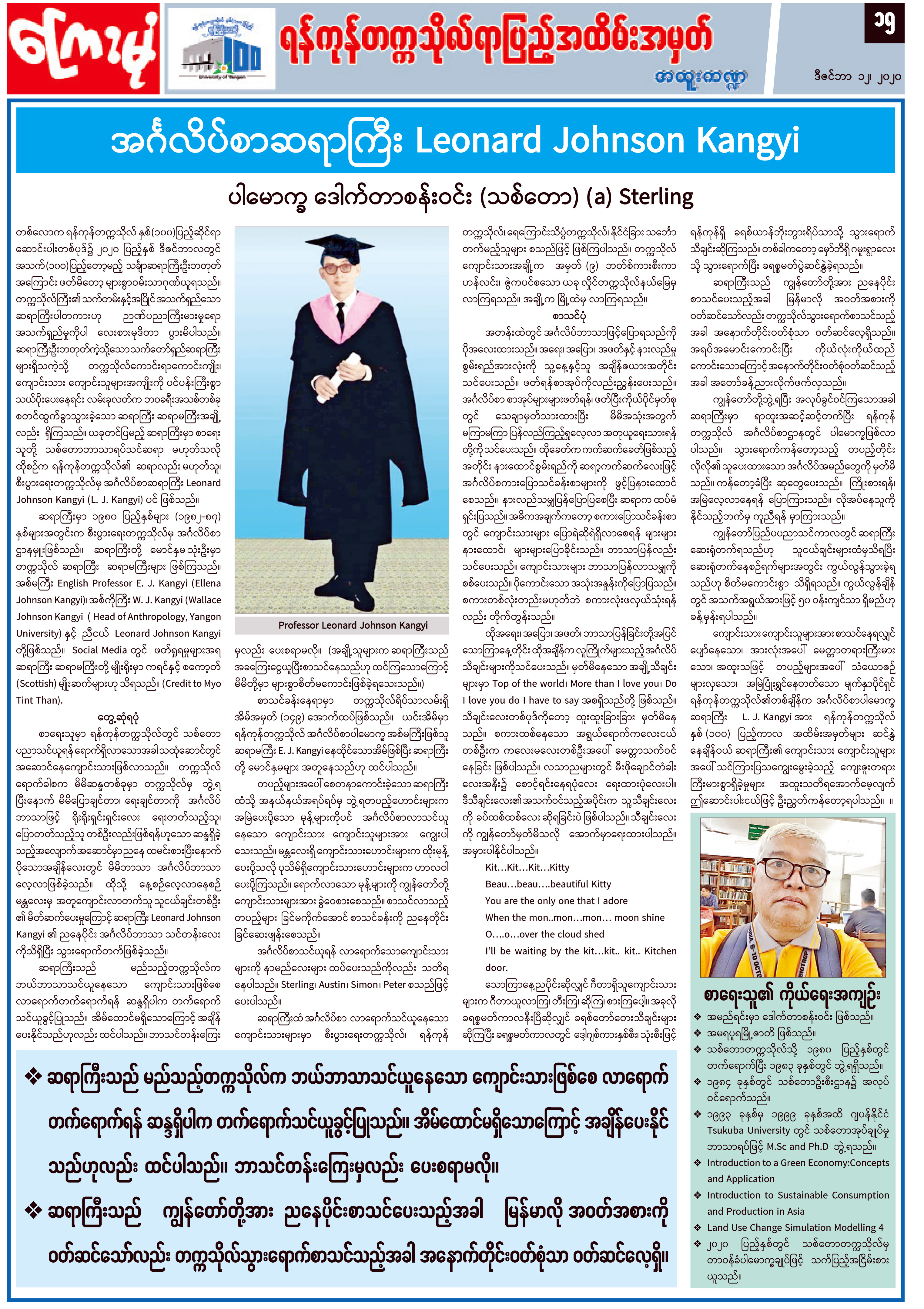 အင်္ဂလိပ်စာ ဆရာကြီး Leonard Johnson Kangyi