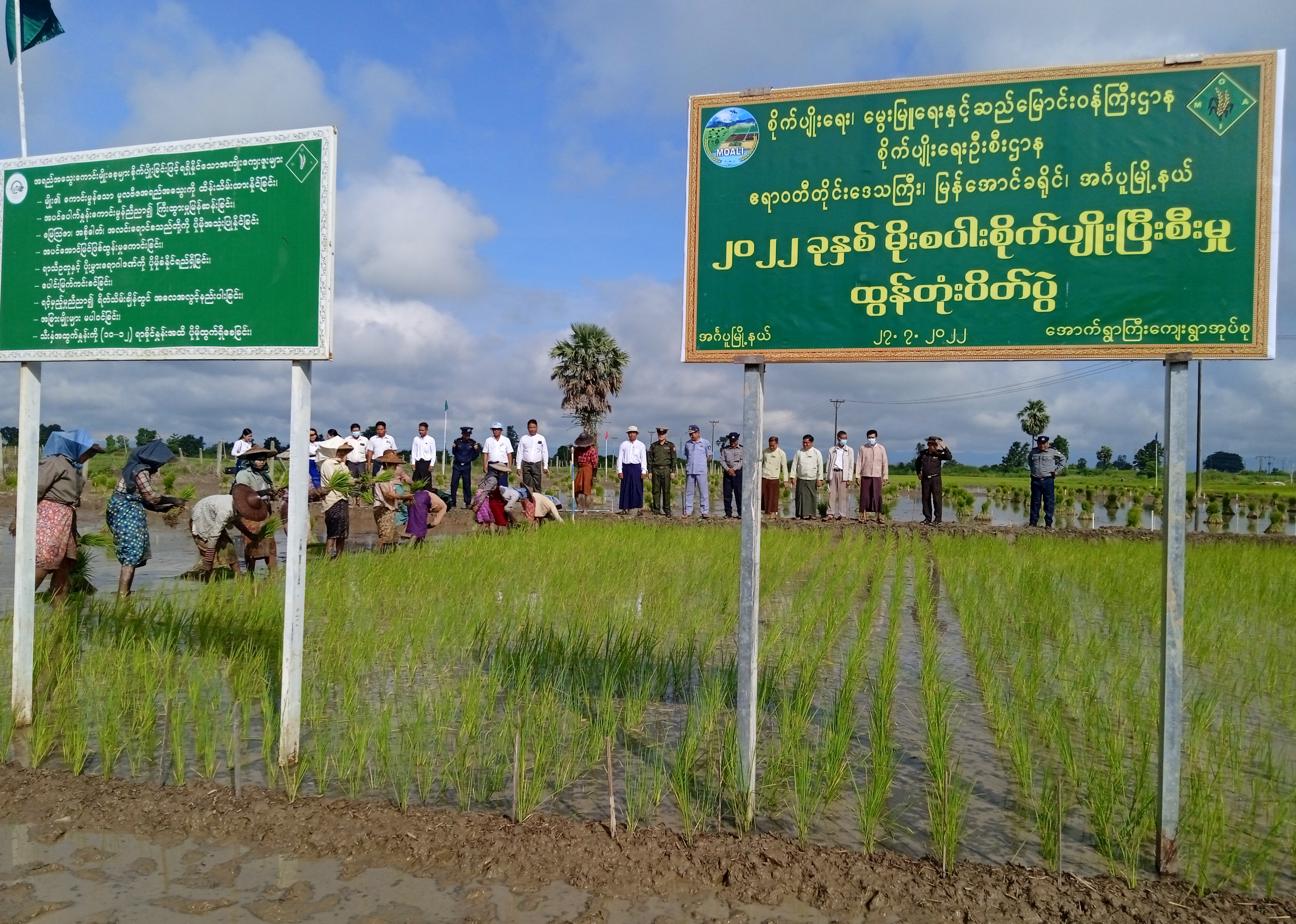 အခမ်းအနားသို့ မြန်အောင်ခရိုင်စီမံအုပ်ချုပ်ရေးအဖွဲ့ဥက္ကဋ္ဌ ဦးမျိုးလှိုင် တက်‌ရောက် ကြည့်ရှုအားပေးခဲ့ပြီး မြို့နယ်စိုက်ပျိုးရေးဦးစီးမှူးဦးသက်နိုင်စိုးမှ ၂၀၂၂ ခုနှစ် မိုးစပါး စိုက်ပျိုးထားရှိမှုအခြေအနေများကို ရှင်းလင်းတင်ပြခဲ့သည်။