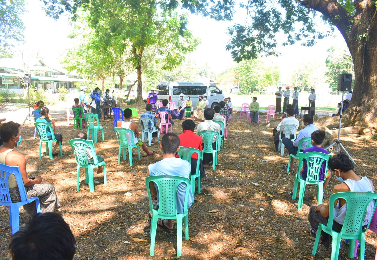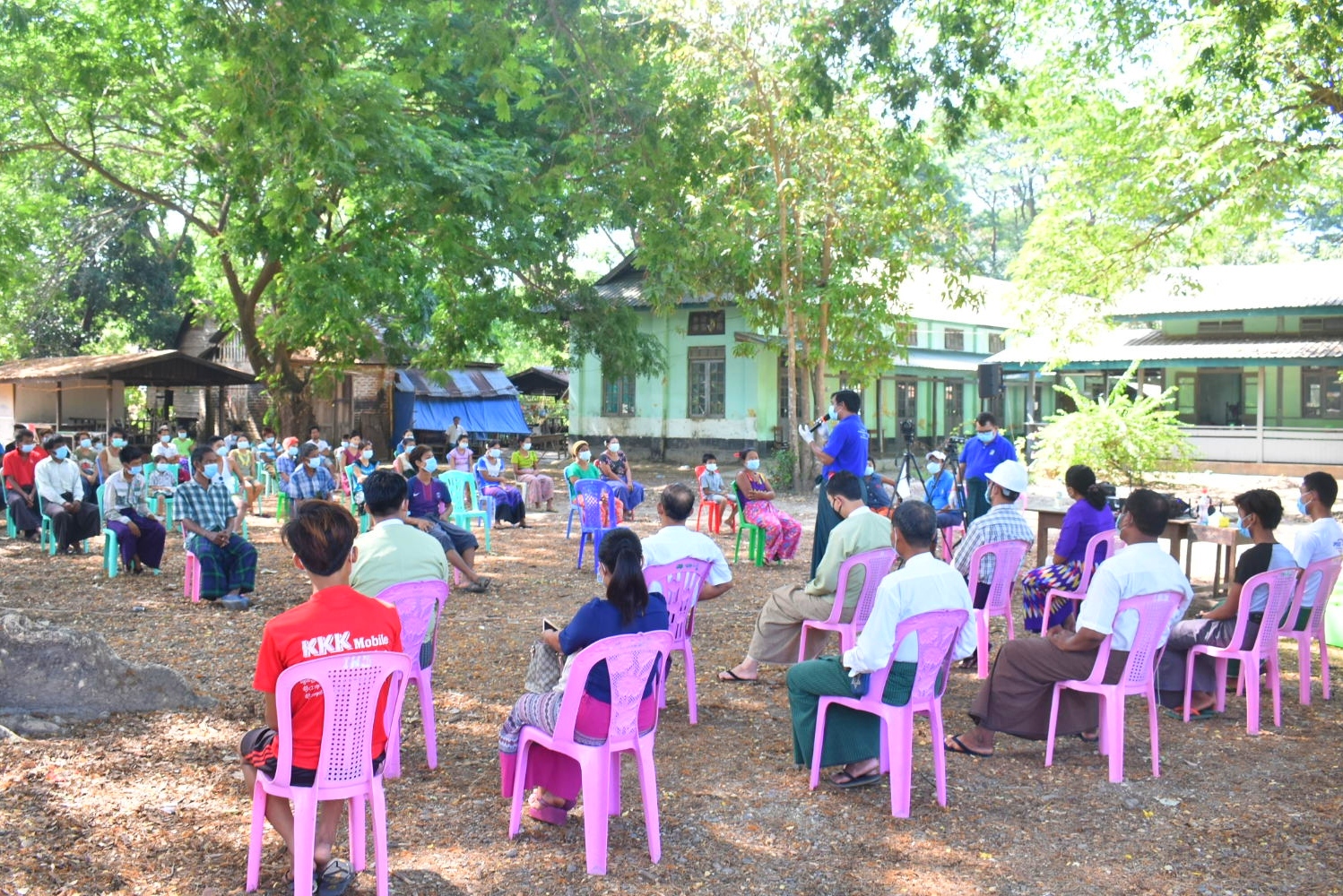 ဟောပြောပွဲတွင်မြို့နယ် အုပ်ချုပ်ရေးမှူး ဦးရဲရင့်လှိုင်က မိတ်ဆက်အားပေးအမှာစကား ပြောကြားပြီး နိုင်ငံရေး အကျဉ်းသားများ ကူညီစောင့်ရှောက်ရေးအဖွဲ့မှ စာရေးဆရာမ နှင်းပန်းအိမ်နှင့် ဦးအောင်မျိုးကျော်တို့က အားပေးစကားပြောကြားရာတွင် Quarantine ဝင်ရောက်သူများသည် အပြစ်တစ်စုံတစ်ရာရှိခြင်းကြောင့် မဟုတ်ဘဲ ယခုဖြစ်ပွားနေသော ကိုဗစ်-၁၉ ရောဂါပြန့်ပွားမှုမရှိစေရေးအတွက် အမျိုးသားရေးစိတ်ဓာတ်ဖြင့် ကူညီဆောင်ရွက်ပေးနေသူများဖြစ်ကြောင်း၊ မိမိတို့ နိုင်ငံသည် ငွေကြေးပြည့်စုံမှု မရှိသော်လည်း စေတနာနှင့် လုပ်အားပြည့်စုံသည့်အတွက် အခြားနိုင်ငံကြီးများမဆောင်ရွက်နိုင်သည့် ယခုကဲ့သို့ Facility Quarantine များကိုဆောင်ရွက်ပြီး ကိုဗစ်ရောဂါကိုကာကွယ် ထိန်းချုပ်တိုက်ထုတ်နေနိုင်ခြင်းဖြစ်ကြောင်း၊ လာရောက်နေထိုင်သူများအနေဖြင့်လည်း မိမိတို့၏ မိသားစု၊ ရပ်ရွာနှင့် တိုင်းပြည်အကျိုးအတွက် သယ်ပိုးနေသူများအဖြစ် မိမိကိုယ်ကိုခံယူနေထိုင်ပါက စိတ်ချမ်းမြေ့ နိုင်မည်ဖြစ်ပါကြောင်း၊ တစ်ဦးနှင့်တစ်ဦးချစ်ချစ်ခင်ခင် နေထိုင်စေလိုကြောင်း၊ စက်ရုံအလုပ်ရုံစသည့် လုပ်ငန်းခွင် ဝင်ရောက်ကြရမည့်သူများအနေဖြင့်လည်း ယခုစောင့်ကြည့်ရက်များကြောင့် လုပ်ငန်းမှဖယ်ရှားခံရခြင်း၊ လုပ်ငန်း ထိခိုက်ခြင်းများမရှိအောင် သက်ဆိုင်ရာများနှင့် ညှိနှိုင်း ဆောင်ရွက်ပေးသွားမည်ဖြစ်ကြောင်း အားပေးဟောပြောသည်။