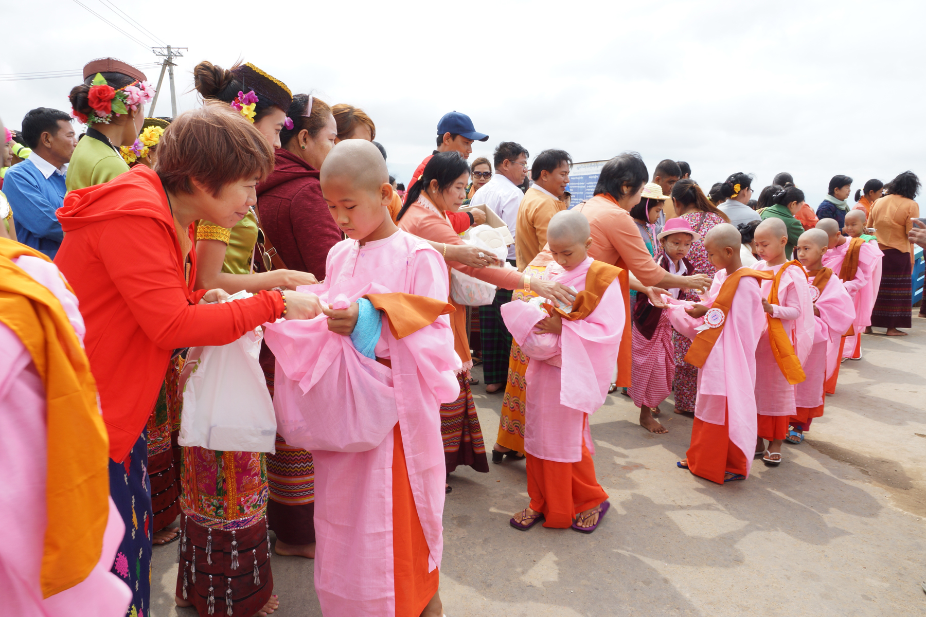ဆက်လက်၍ သာသနာ့အမွေခံယူပွဲသို့ ကြွရောက်လာသည့် သံဃာ အပါး(၇၀)နှင့် သာသနာ့အမွေခံယူကြမည့်သီလရှင်အပါး(၁၀ဝ)တို့အား ရှမ်းတိုင်းရင်းသား လူမျိုးရေးရာဝန်ကြီးနှင့် ကြွရောက်လာသူဧည့်ပရိသတ်များက သိမ်ဆင်းအလှူအဖြစ် ဝတ္ထုငွေနှင့် လှူဖွယ်ပစ္စည်းများကို ဆက်ကပ် လှူဒါန်းခဲ့ကြသည်။