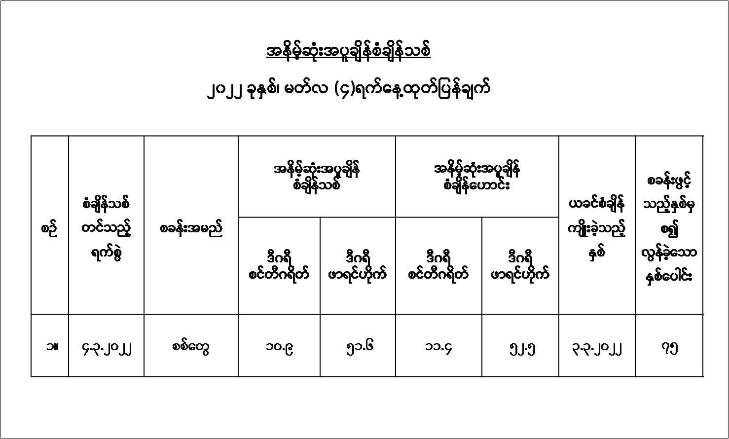 မတ် (၄)ရက်တွင် မိုးလေဝသနှင့် ဇလဗေဒညွှန်ကြားမှုဦးစီးဌာနမှ ထုတ်ပြန်သည့် မတ်လ၏ အနိမ့်ဆုံးအပူချိန်စံချိန်သစ် ---