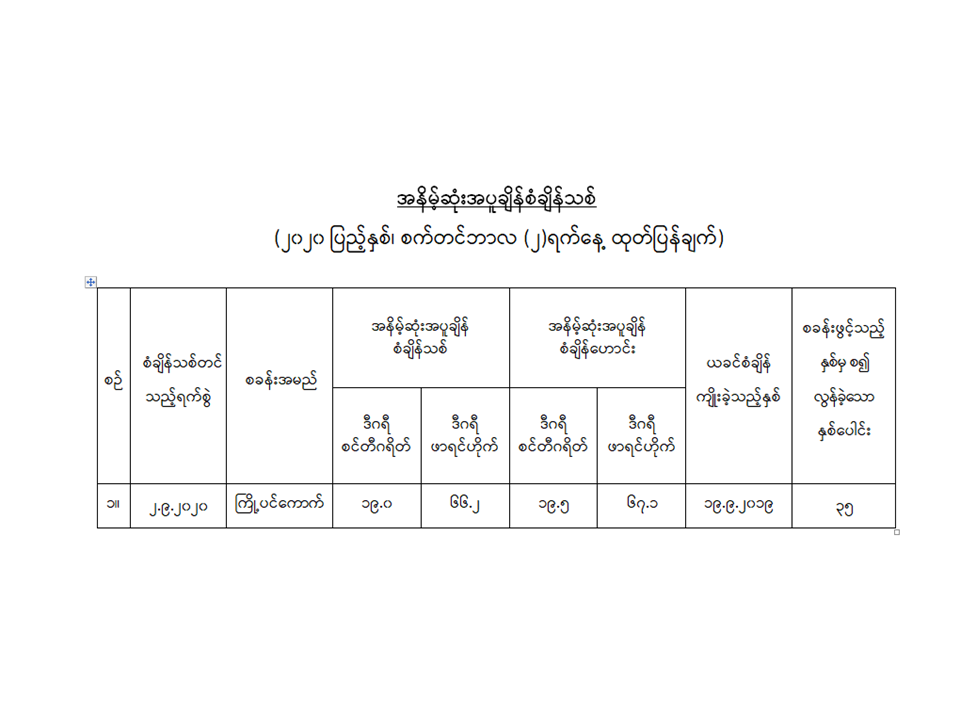 အနိမ့်ဆုံးအပူချိန်(နေ့အပူချိန်)စံချိန်သစ်