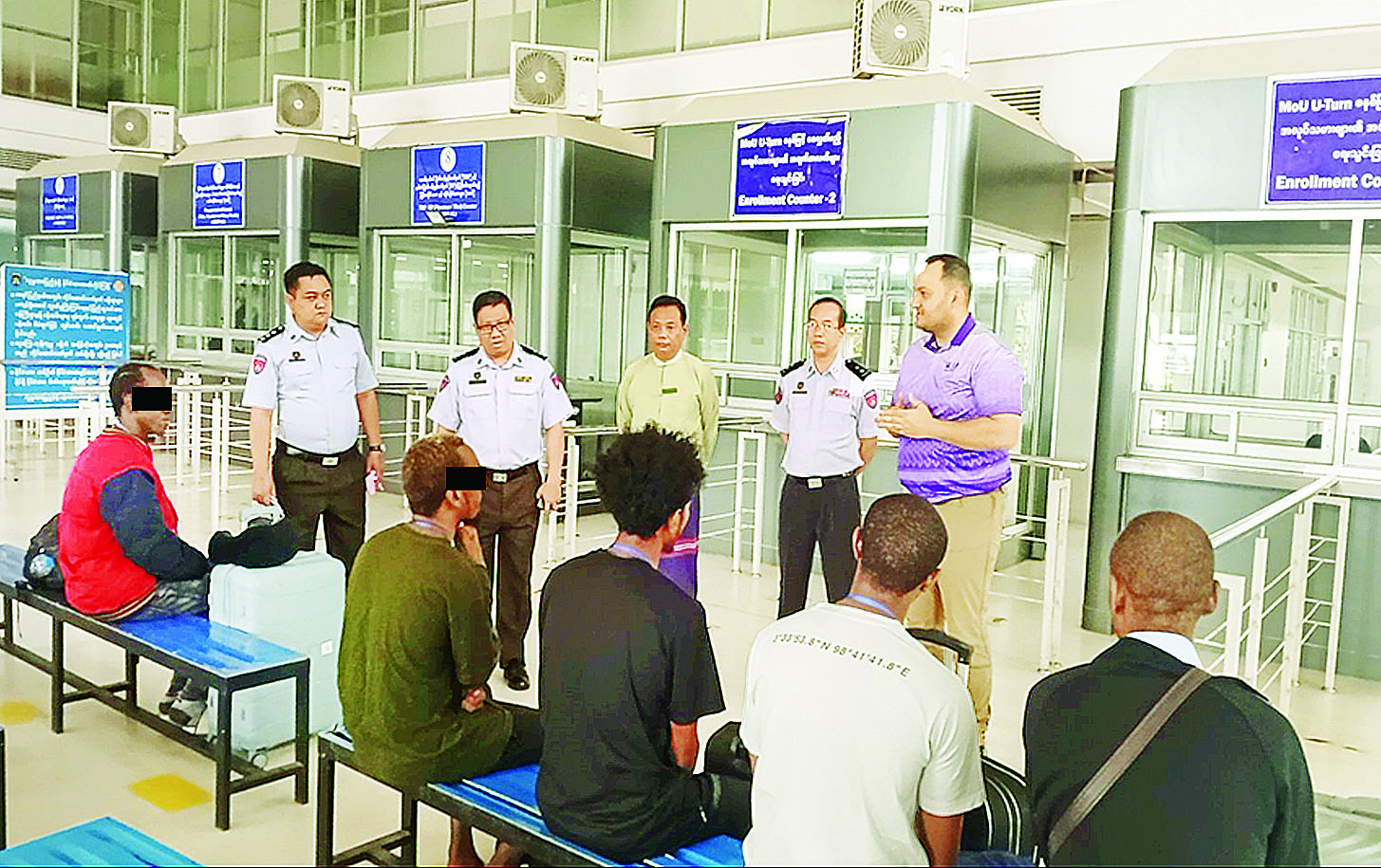 ထိုသို့ လွှဲပြောင်းပေးလျက်ရှိရာ မြန်မာနိုင်ငံအတွင်းသို့ နယ်စပ်လမ်းကြောင်းများမှတစ်ဆင့် တရားမဝင် ဝင်ရောက်နေထိုင်ပြီး ကရင်ပြည်နယ် မြဝတီမြို့-ရွှေကုက္ကိုလ်၊ မဲ့ထော်သလေး (KK Park) နှင့် ကျောက်ခတ်နယ်မြေများတွင် တရားမဝင် Online လောင်းကစားမှုများ၊ Online လိမ်လည်မှုများနှင့် ဒုစရိုက်မှုများလုပ်ဆောင်ခဲ့ကြသည့် အီသီယိုးပီးယားနိုင်ငံသား လေးဦးနှင့် ကင်ညာနိုင်ငံသား တစ်ဦး စုစုပေါင်းပြည်ပနိုင်ငံသား ငါးဦးအား လူသားချင်းစာနာထောက်ထားမှုနှင့် နိုင်ငံအချင်းချင်း ချစ်ကြည်ရင်းနှီးမှုတို့ကို ရှေးရှု၍ ယနေ့တွင် ထိုင်းနိုင်ငံမှတစ်ဆင့် သက်ဆိုင်ရာနိုင်ငံများသို့ ဥပဒေလုပ်ထုံးလုပ်နည်းများနှင့်အညီ စနစ်တကျလွှဲပြောင်းပေးသည်။