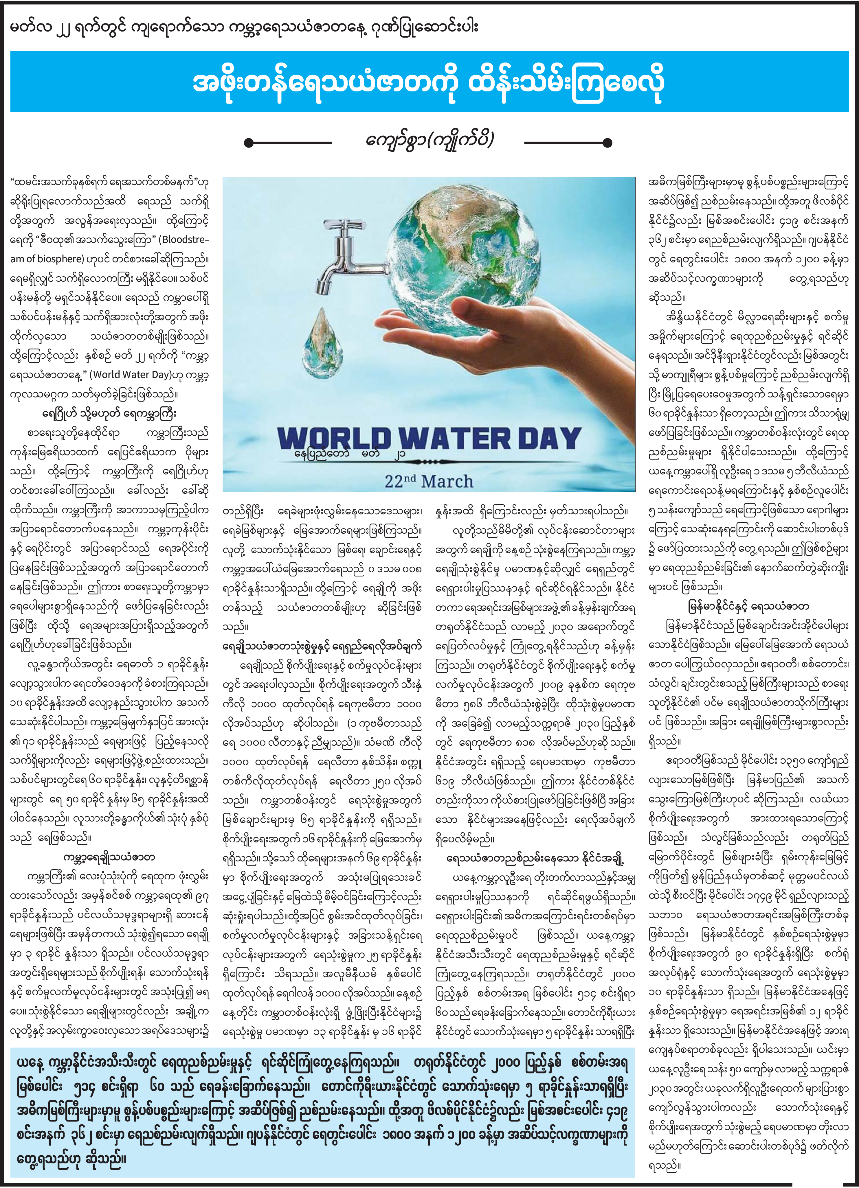 အဖိုးတန် ရေသယံဇာတကို ထိန်းသိမ်းကြစေလို