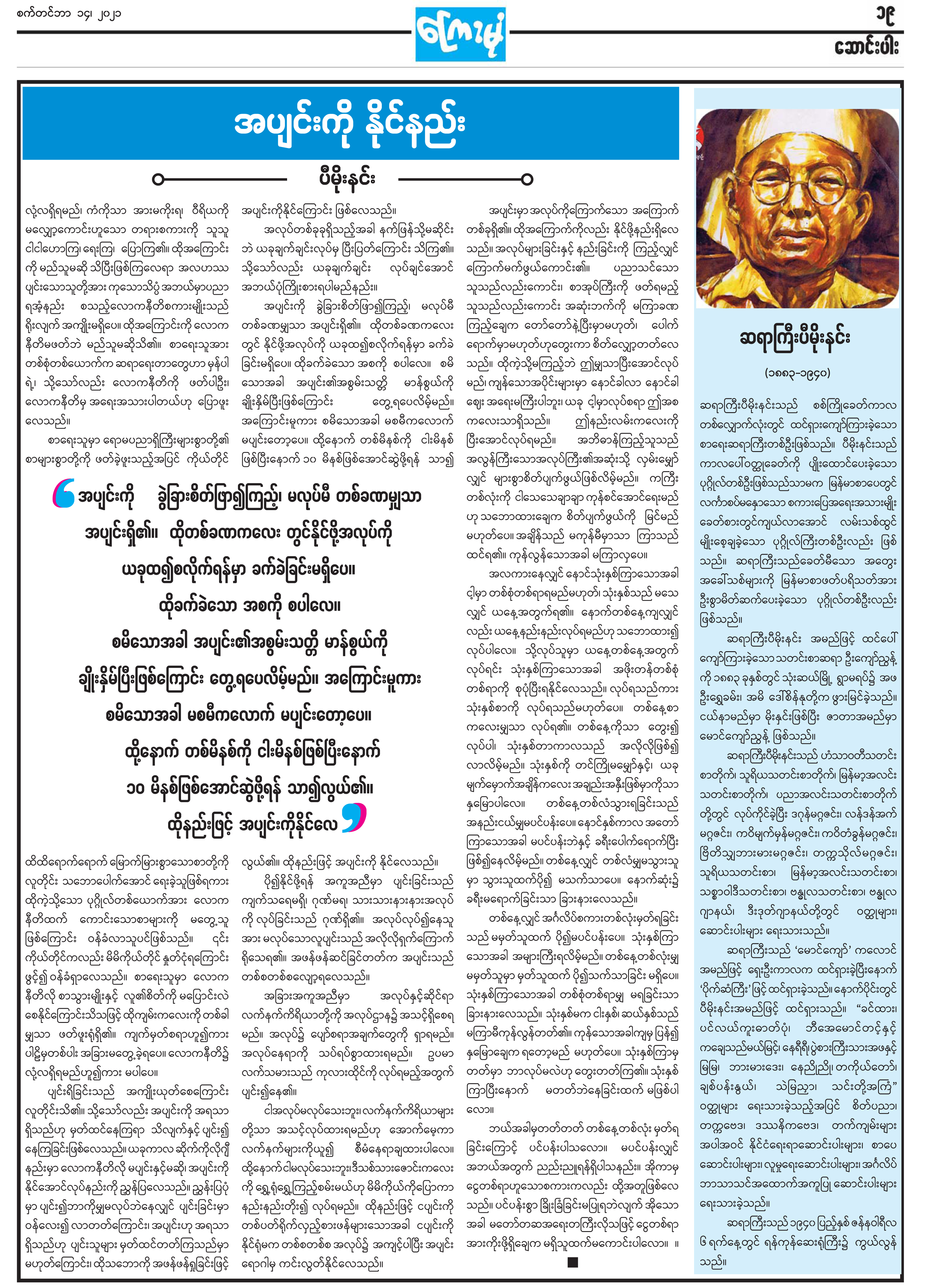 အယ်ဒီတာထံ ပေးစာ