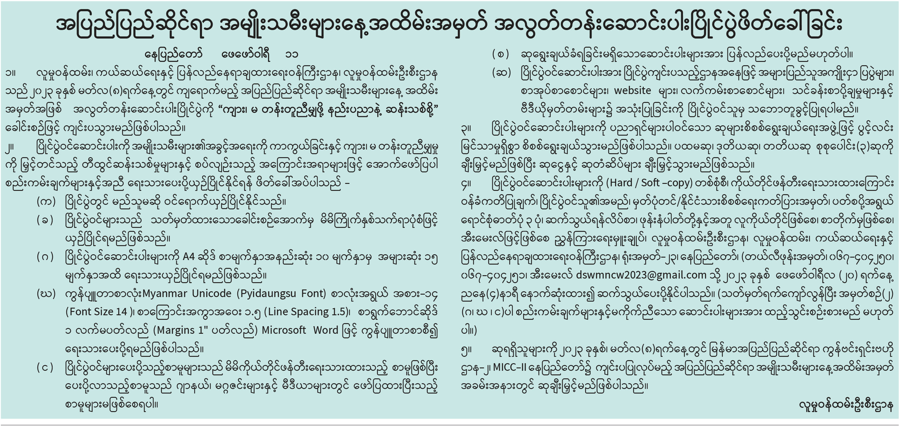 အပြည်ပြည်ဆိုင်ရာ အမျိုးသမီးများနေ့အထိမ်းအမှတ် အလွတ်တန်းဆောင်းပါးပြိုင်ပွဲဖိတ်ခေါ်ခြင်း