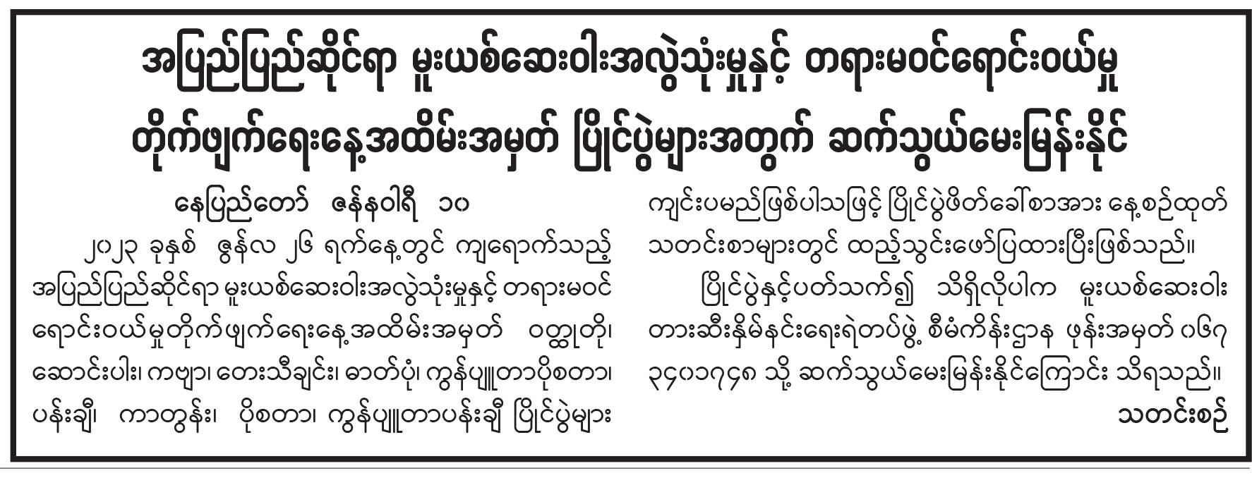 ပြည်တွင်းသတင်း