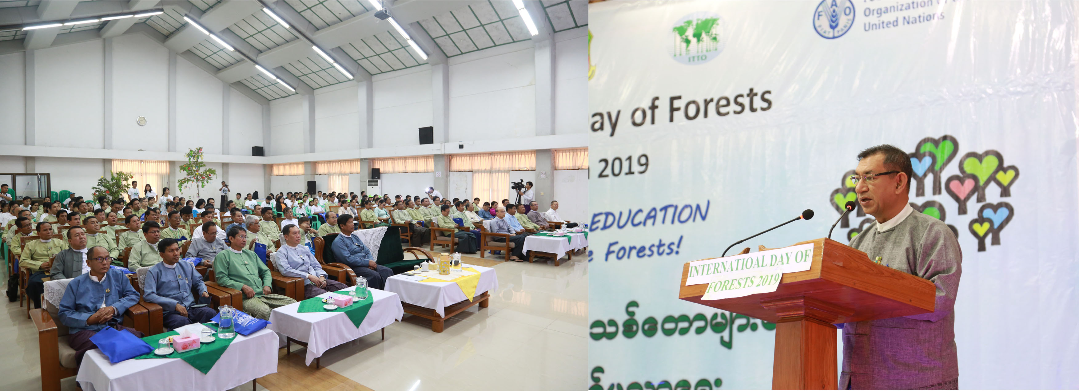 အပြည်ပြည်ဆိုင်ရာ သစ်တောများနေ့ အခမ်းအနားကို ယနေ့ နံနက် (၉)နာရီက နေပြည်တော် ရေဆင်းရှိ သစ်တောသုတေသနဌာန၌ ကျင်းပသည်။ အခမ်းအနားတွင် သဘာဝပတ်ဝန်းကျင် ထိန်းသိမ်းရေးဝန်ကြီးဌာန ဒုတိယဝန်ကြီး ဒေါက်တာရဲမြင့်ဆွေက ယနေ့ ကမ္ဘာ့ပတ်ဝန်းကျင် ယိုယွင်းပျက်စီးလာမှုနှင့်အတူ မြန်မာနိုင်ငံအပါအဝင် ကမ္ဘာ့နိုင်ငံအသီးသီးသည် ရာသီဥတုပြောင်းလဲမှုများနှင့် နောက်ဆက်တွဲအကျိုးဆက်များကို ရင်ဆိုင်တွေ့ကြုံရလျက်ရှိပါကြောင်း၊