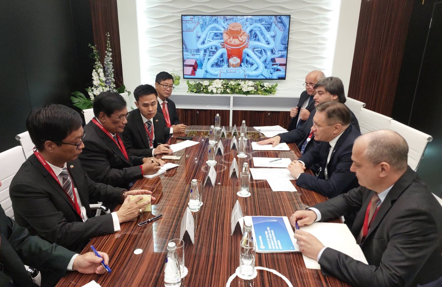 ထို့နောက် ပြည်ထောင်စုဝန်ကြီးသည် Rosatom ၏ ညွှန်ကြားရေးမှူးချုပ် Mr.Alexey Likhachev နှင့်တွေ့ဆုံ၍ လျှပ်စစ်ဓာတ်အားထုတ်လုပ်မှုအပိုင်းတွင် ယခုထက် ပိုမိုပူးပေါင်းဆောင်ရွက်နိုင်ရေး ဆွေးနွေးခဲ့သည်။