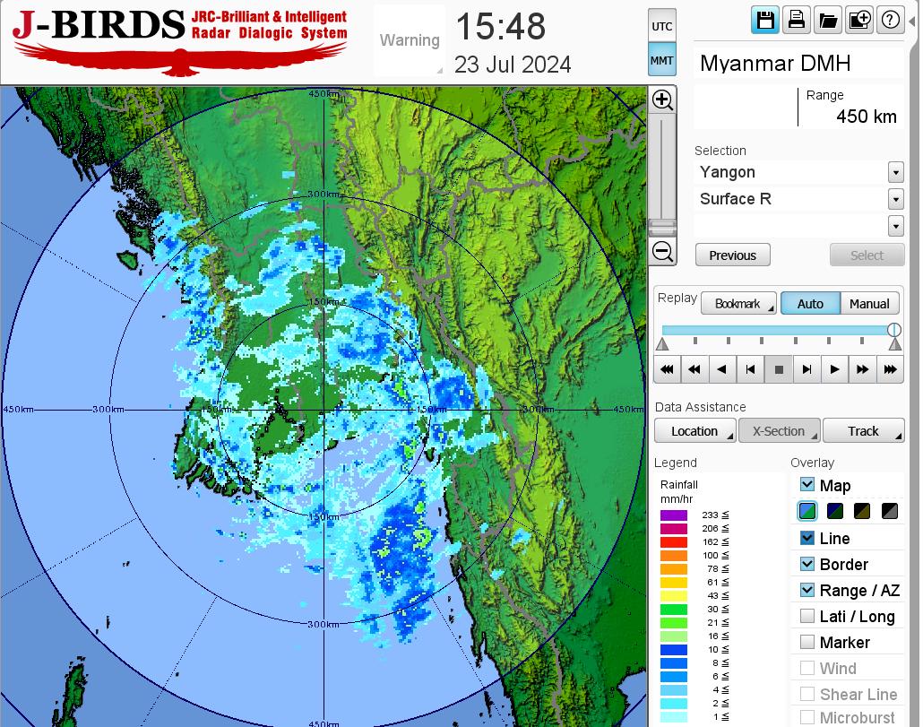 မိုးတိမ်တောင်ဖြစ်ပေါ်မှုအခြေအနေ။ မကွေးတိုင်းဒေသကြီး၊ ပဲခူးတိုင်းဒေသကြီး၊ ရန်ကုန်တိုင်းဒေသကြီး၊ ဧရာဝတီတိုင်းဒေသကြီး၊ တနင်္သာရီတိုင်းဒေသကြီးနှင့် ရခိုင်ပြည်နယ်တို့တွင် မိုးတိမ်တောင်များ ဖြစ်ထွန်းလျက်ရှိပါသည်။
