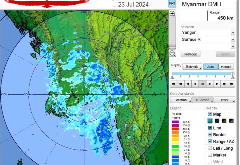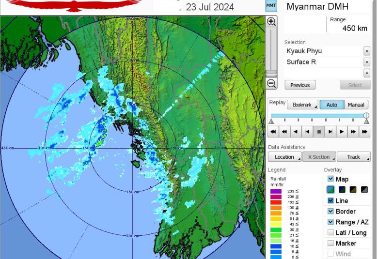 ဘင်္ဂလားပင်လယ်အော်အခြေအနေ။ ကပ္ပလီပင်လယ်ပြင်နှင့် ဘင်္ဂလားပင်လယ်အော်တို့တွင် မုတ်သုံလေ အားကောင်းနေပါသည်။