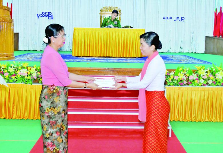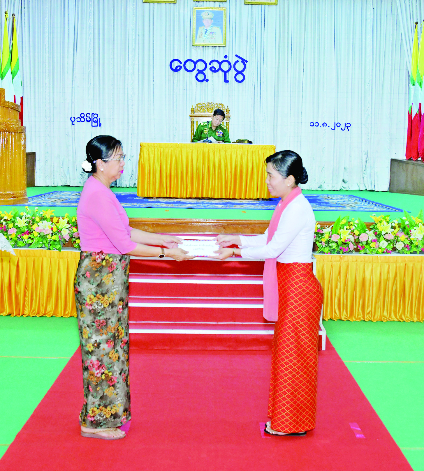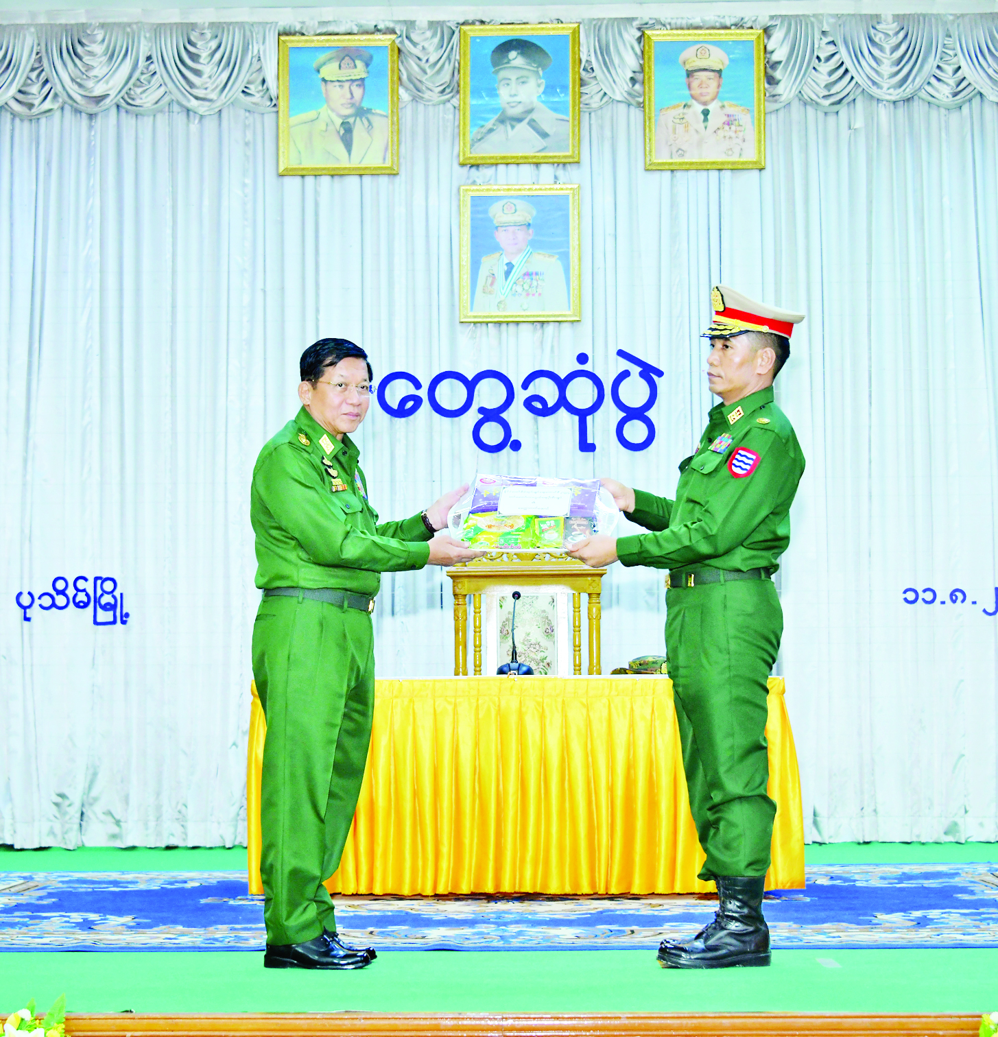 ထို့နောက်  နိုင်ငံတော်စီမံအုပ်ချုပ်ရေးကောင်စီဥက္ကဋ္ဌ တပ်မတော်ကာကွယ်ရေးဦးစီးချုပ်သည် အရာရှိ၊ စစ်သည်၊ မိသားစုများအတွက်  စားသောက်ဖွယ်ရာပစ္စည်းများကို ပေးအပ်ရာ တိုင်းမှူးကလည်းကောင်း၊  နိုင်ငံတော်စီမံအုပ်ချုပ်ရေးကောင်စီဥက္ကဋ္ဌ၊ တပ်မတော်ကာကွယ်ရေးဦးစီးချုပ်၏ဇနီးက  တပ်နယ်မိခင်နှင့် ကလေးစောင့်ရှောက်ရေးအသင်းအတွက် ချီးမြှင့်ငွေများကိုပေးအပ်ရာ  တိုင်းမှူး၏ဇနီးက လည်းကောင်း လက်ခံရယူကြသည်။