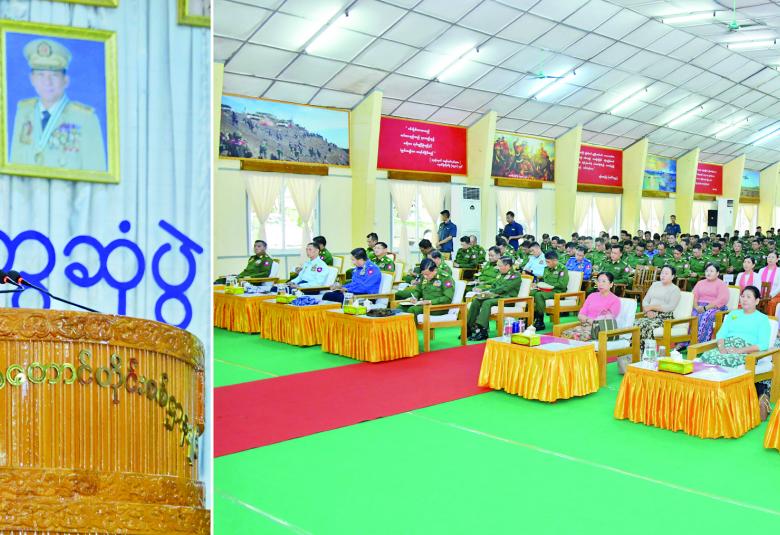 ဆက်လက်ပြောကြားရာတွင် အသစ်ထပ်မံချမှတ်ထားသည့် ရှေ့လုပ်ငန်းစဉ်(၅)ရပ်နှင့် ဦးတည် ချက်(၉)ရပ်ကို ကျယ်ကျယ်ပြန့်ပြန့်လေ့လာ၍ အောင်မြင်နိုင်ရေး အကောင်အထည်ဖော်ဆောင်ရွက်ရာ၌ ကျရာအခန်းကဏ္ဍက ပါဝင်ရမည်ဖြစ်ကြောင်း၊ ဦးတည်ချက်များအနက် လူငယ်များ၏ အခန်းကဏ္ဍ တစ်ခုကို ထည့်သွင်းချမှတ်ထားကြောင်း၊ အနာဂတ်နိုင်ငံတော်၏တာဝန်ကို ထမ်းဆောင်ရန်အတွက် ကာယဗလ၊ ဉာဏဗလ၊ စာရိတ္တဗလ၊ မိတ္တဗလ၊ ဘောဂ ဗလဟူသည့် ဗလငါးတန်နှင့် ပြည့်စုံသည့် လူကောင်း၊ လူတော်များကို မွေးထုတ်ပေးရန်လိုကြောင်း၊ နိုင်ငံ၏ အနာဂတ်တိုးတက်ရေးအတွက်  လူငယ်များသည် အရေးပါသည့် အခန်းကဏ္ဍမှပါဝင်နေပြီး အနာဂတ်တိုင်းပြည်ကို ဦးဆောင်နိုင်သည့် နိုင်ငံ့ခေါင်းဆောင်များ ပေါ်ထွက်လာစေရေးဆောင်ရွက်ပေးရမည်ဖြစ်ကြောင်း၊ အကျင့်စာရိတ္တ ကောင်းမွန်ပြီး အသိဉာဏ်ဖွံ့ဖြိုးသူများဖြစ်အောင် လေ့ကျင့်ပျိုးထောင်ပေးနိုင်မှသာလျှင် အနာဂတ် နိုင်ငံတော်အတွက် ခိုင်မာမှုကို ဖြစ်ပေါ်စေမည်ဖြစ်ကြောင်း၊ ယခင်က ပညာရေးစနစ်၏ အားနည်းမှု၊ စီမံခန့်ခွဲမှုပိုင်းဆိုင်ရာ အားနည်းမှုများရှိခဲ့ခြင်းကြောင့် ကျောင်းသား ကျောင်းသူများ၏ ပညာရေး တွင်  အားနည်းချက်များရှိခဲ့ကြောင်း၊ ပညာရည် မြင့်မားတိုးတက်မှုသည် နိုင်ငံဖွံ့ဖြိုးတိုးတက်မှုကို   များစွာ အထောက်အကူပြုစေမည် ဖြစ်သဖြင့် မိမိတို့အနေဖြင့် နိုင်ငံတော်တာဝန်ကို စတင်ထမ်းဆောင်ချိန် မှစ၍ ပညာရည်မြင့်မားရေးကိစ္စရပ်များကို  အားပေး ဆောင်ရွက်ခဲ့ခြင်းဖြစ်ကြောင်း၊   တိုင်းပြည်အတွက်  ရေရှည်အကျိုးကို မြော်တွေး၍ ရှေ့လုပ်ငန်းစဉ်များ၊ ဦးတည်ချက်များကို ချမှတ်ဆောင်ရွက်နေခြင်း ဖြစ်ကြောင်း၊   အရာရှိ၊ စစ်သည်၊ မိသားစုများအနေဖြင့်လည်း ရှေ့လုပ်ငန်းစဉ်များ၊ ဦးတည်ချက်များ၏ ဆိုလိုချက်နှင့် မျှော်မှန်းချက်များကို သဘောပေါက်နားလည်ကြရန်နှင့် မိမိတို့ တတ်နိုင်သည့်ဘက်မှ   လိုက်နာအကောင် အထည်ဖော်ဆောင်ကြရန်လိုသည်ကို တိုက်တွန်းမှာကြားလိုကြောင်း။