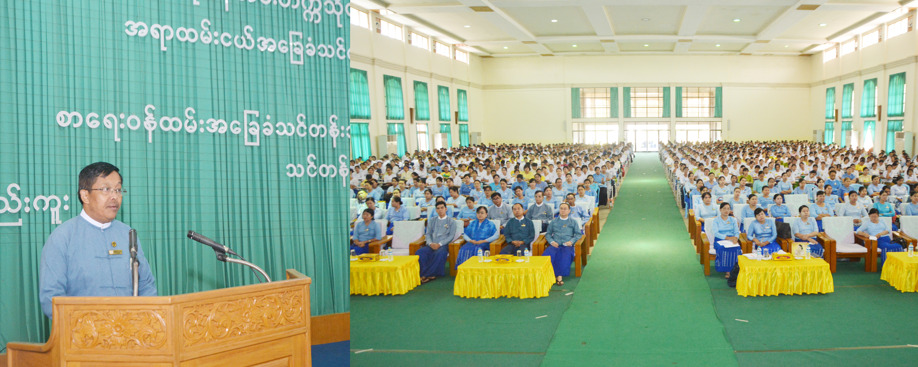 ဗဟိုဝန်ထမ်းတက္ကသိုလ်(အောက်မြန်မာပြည်)တွင် အရာထမ်းငယ်အခြေခံသင်တန်း အမှတ်စဉ်(၈၉) (၉၀)(၉၁)နှင့် စာရေးဝန်ထမ်းအခြေခံသင်တန်းအမှတ်စဉ် (၁၇၁)(၁၇၂)(၁၇၃) (၁၇၄) တို့ကို ဧပြီ (၂၉)ရက် နံနက်(၈)နာရီတွင် ရတနာသိင်္ဃခန်းမ၌ ဖွင့်လှစ်ခဲ့ရာ ပါမောက္ခချုပ် ဦးအောင်တင်စိုး က သင်တန်းဖွင့် အမှာစကား ပြောကြားသည်။