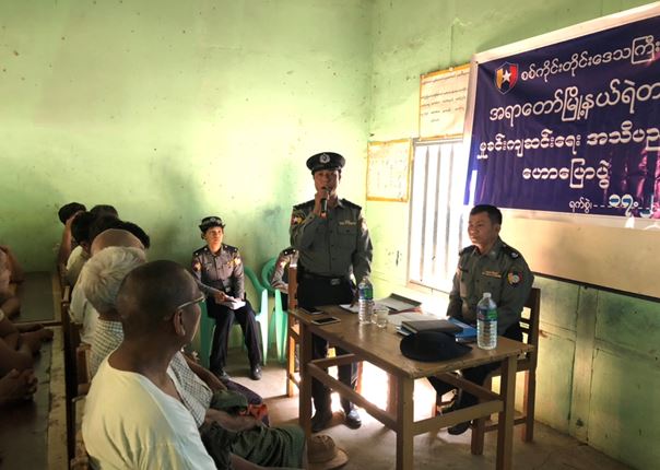 ဟောပြောပွဲတွင် မြို့နယ်ရဲတပ်ဖွဲ့မှူး ရဲမှူး ရဲလွင်က မှုခင်းလျော့နည်းကျဆင်းရေး၊ မုဒိမ်းမှု၊ သက်ငယ်မုဒိမ်းမှုများ မဖြစ်ပေါ်စေရေး၊ လူကုန်ကူးမှုတားဆီးကာကွယ်ရေးတို့အား လည်းကောင်း၊ မြို့မရဲစခန်းမှူး ဒုတိယရဲမှူး အောင်စိုးနိုင် က မူးယစ်ဆေးဝါးတားဆီး နှိမ်နင်းရေး၊ မူးယစ်ဆေးဝါး သုံးစွဲခြင်းကြောင့် ဖြစ်ပေါ်လာနိုင်သည့်ဆိုးကျိုးများ၊ ယာဉ်စည်းကမ်း လမ်းစည်းကမ်း လိုက်နာဆောင်ရွက်ရေးတို့အား အသိပညာပေး ဟောပြောခဲ့ပြီး တက်ရောက်လာသည့်ကျေးရွာနေပြည်သူ (၁၀၀)အား ပညာပေး လက်ကမ်းစာစောင်များ ဖြန့်ဝေပေးခဲ့ကြောင်း ရဲပြန်ကြားမှှ သိရသည်။