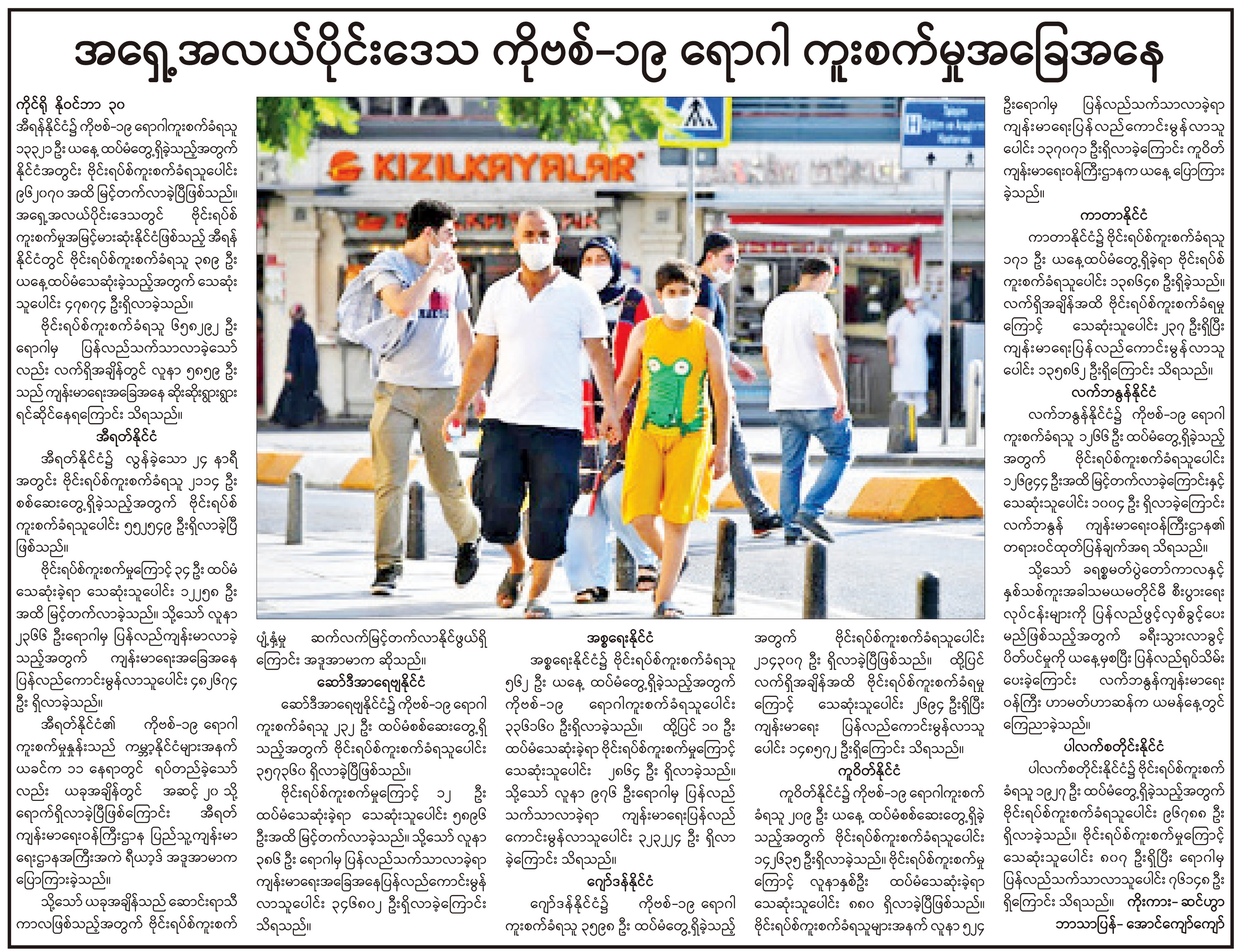 အရှေ့အလယ်ပိုင်းဒေသ ကိုဗစ်-၁၉ ရောဂါ ကူးစက်မှုအခြေအနေ