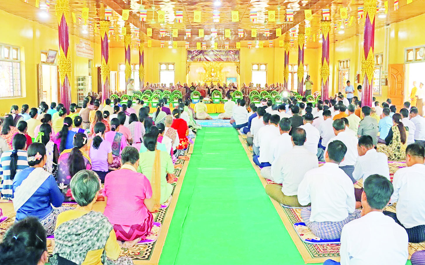 ယနေ့နံနက်ပိုင်းတွင် တိုင်းမှူးနှင့် အဖွဲ့ဝင်များက ပင့်သံဃာ ၂၄ ပါး၊ ကျောင်းတိုက်အတွင်း သီတင်းသုံးလျက်ရှိသော ဆရာတော်၊ သံဃာ တော် အပါး ၄၀၊ ဒုလ္လဘရဟန်း ၅၅ ပါးနှင့် သာမဏေ အပါး ၉၀ စုစုပေါင်း ၂၀၉ ပါးတို့ကို သိမ်ဆင်းလောင်း လှူကြသည်။ ယင်းနောက် တိုင်းမှူးနှင့် တက်ရောက် လာကြသူများက မဟာဗောဓာရုံကျောင်းတိုက် ပဓာနနာယက ဆရာတော်ထံမှ ငါးပါးသီလခံယူ ဆောက်တည်ကြကာ သံဃာတော်များ ရွတ်ပွား ချီးမြှင့်တော်မူသော ပရိတ်တရားတော်များ နာယူ ကြည်ညိုကြသည်။ ထို့နောက် တိုင်းမှူးနှင့် တက်ရောက်လာကြသူများက သံဃာတော်များအား လှူဖွယ်ပစ္စည်းများ ဆက်ကပ်လှူဒါန်းကြပြီး ဇမ္ဗူ အေး အေတီတပ်ဦး ကျောင်းတိုက်ဆရာတော် ဘဒ္ဒန္တ ဥတ္တမထံမှ အနုမောဒနာတရားနာကြားကာ ရေစက်သွန်းချ အမျှပေးဝေကြသည်။