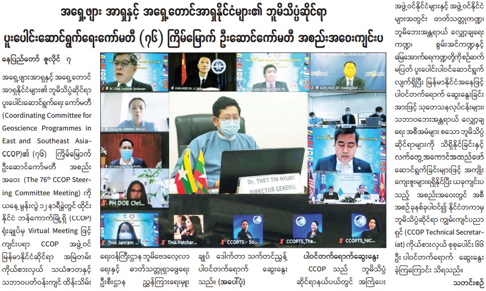 အရှေ့ဖျား အာရှနှင့် အရှေ့တောင်အာရှနိုင်ငံများ၏ ဘူမိသိပ္ပံဆိုင်ရာ ပူးပေါင်းဆောင်ရွက်ရေးကော်မတီ (၇၆)ကြိမ်မြောက် ဦးဆောင်ကော်မတီ အစည်းအဝေးကျင်းပ