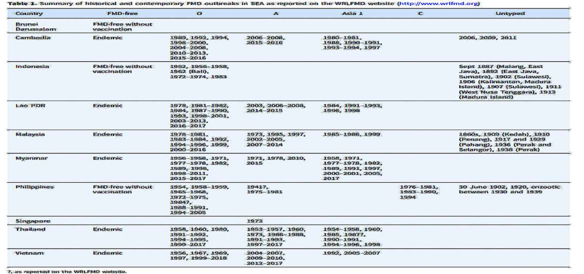 ကျမ်းကိုး။ “A history of FMD research and control programmes in Southeast Asia: lessons from the past informing the future”, 2019. Stuart D. Blacksell, Jarunee Siengsanan-Lamont, Somjai Kamolsiripichaiporn, Laurence J. Gleeson and Peter A. Windsor, Journal of Epidemiology and Infection.