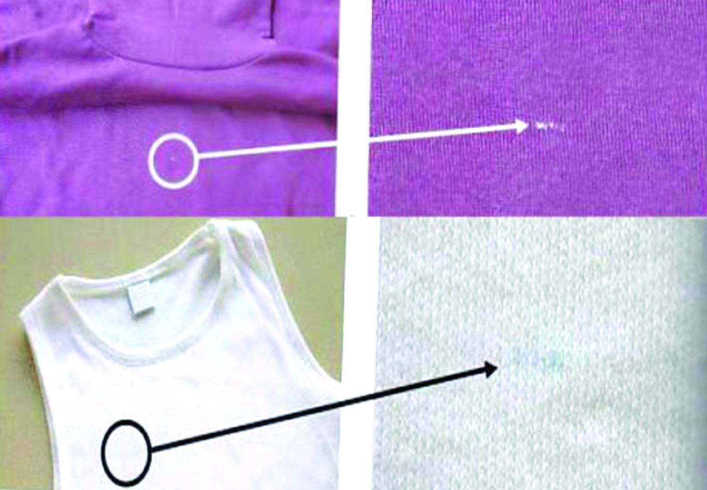 အရောင်ရှိသောအမျှင်များ၊ အရောင်ရှိသော ချည်မျှင်များ၊ ဂုန်လျှော်အမျှင်များ၊ အုန်းဆံမျှင်၊ အရောင်ရှိသော ပလတ်စတစ်အမျှင်များ၊ အရောင်ရှိသော ပလတ်စတစ်ကြိုးများ၊ ဖလင်ကော်ပြားများ စသည်တို့သည် ဝါထဲတွင်ပါဝင်နိုင်ပြီး ညစ်ညမ်းမှု ဖြစ်နိုင်သည်။