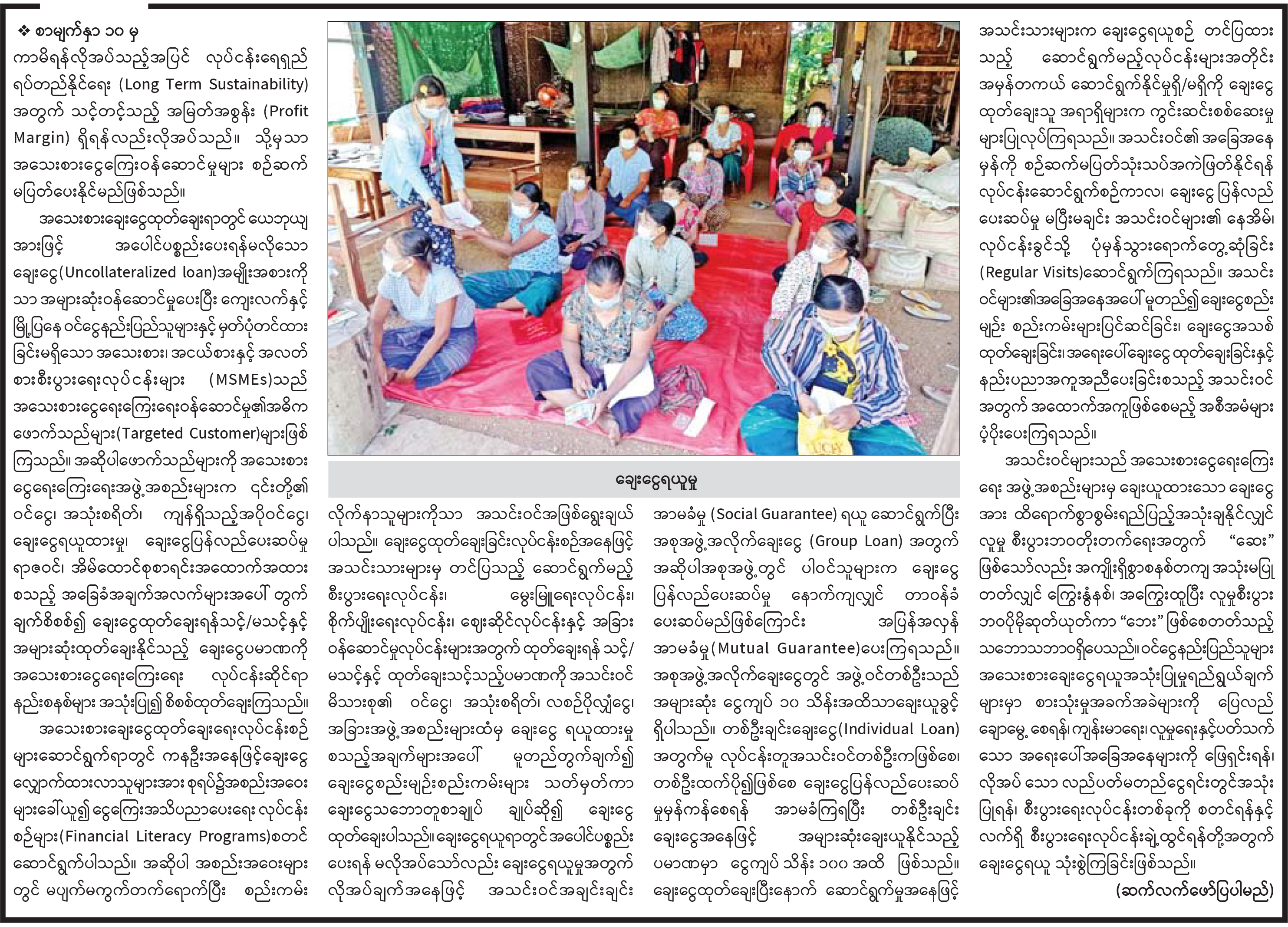 အသေးစားငွေရေးကြေးရေးလုပ်ငန်းအကြောင်း တစေ့တစောင်း