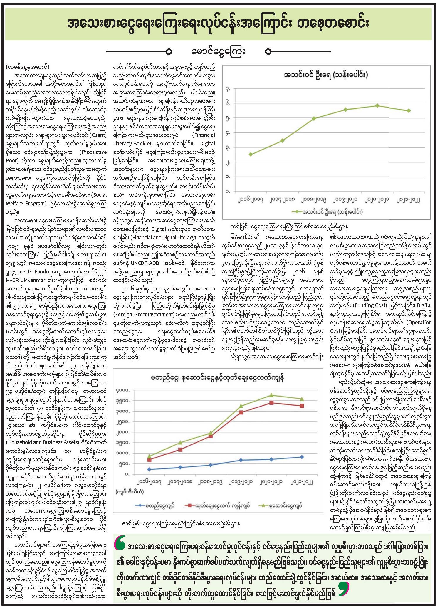 အသေးစားငွေရေးကြေးရေးလုပ်ငန်းအကြောင်း တစေ့တစောင်း