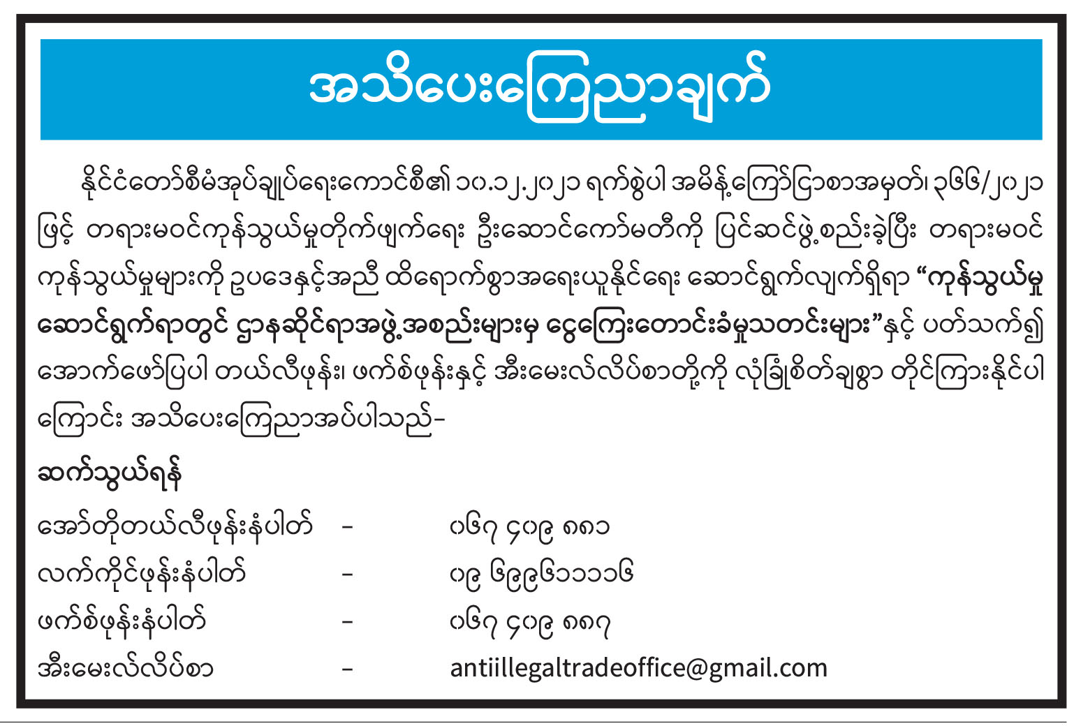 အသိပေးကြေညာချက်