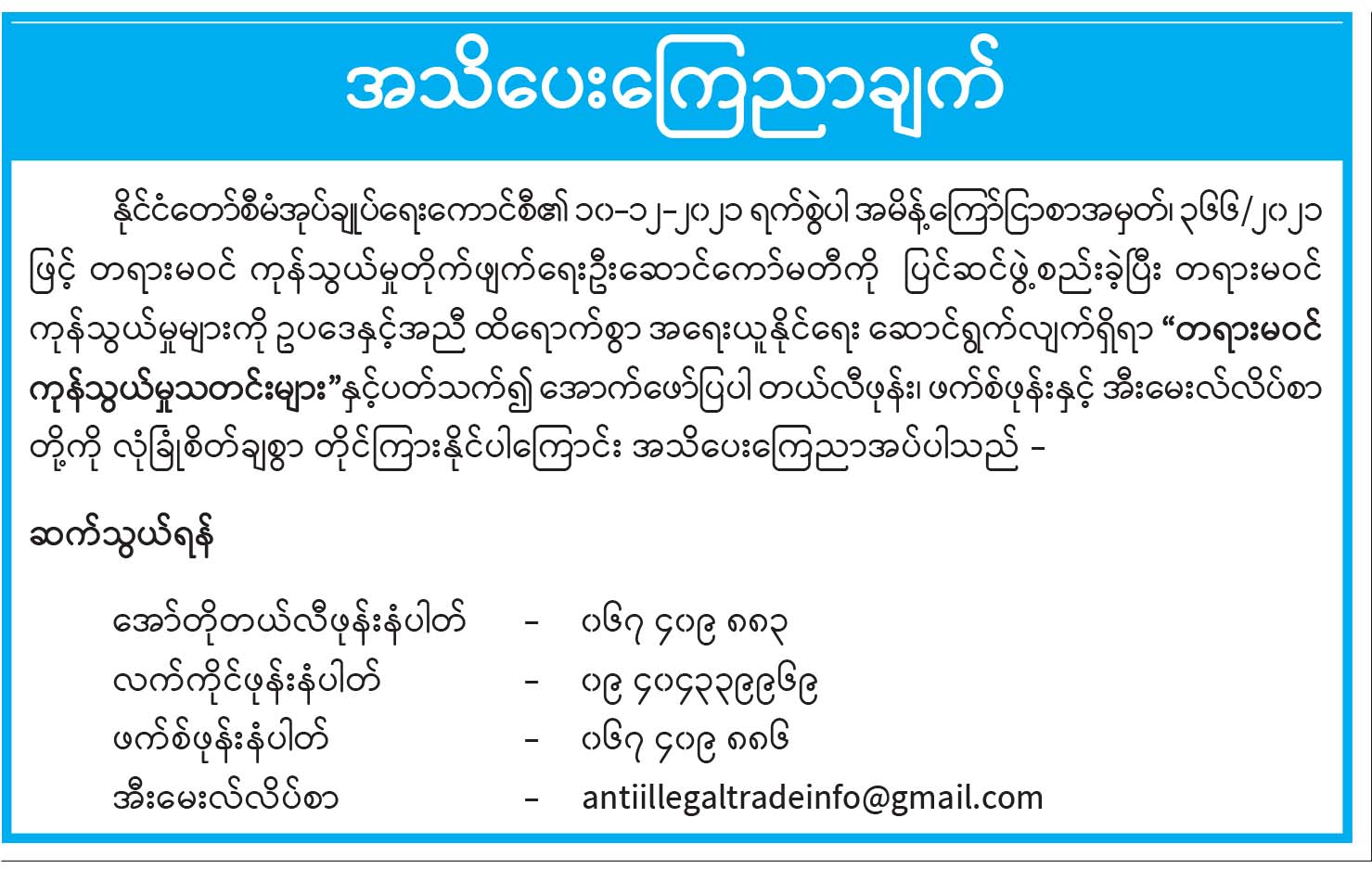 အသိပေးကြေညာချက်
