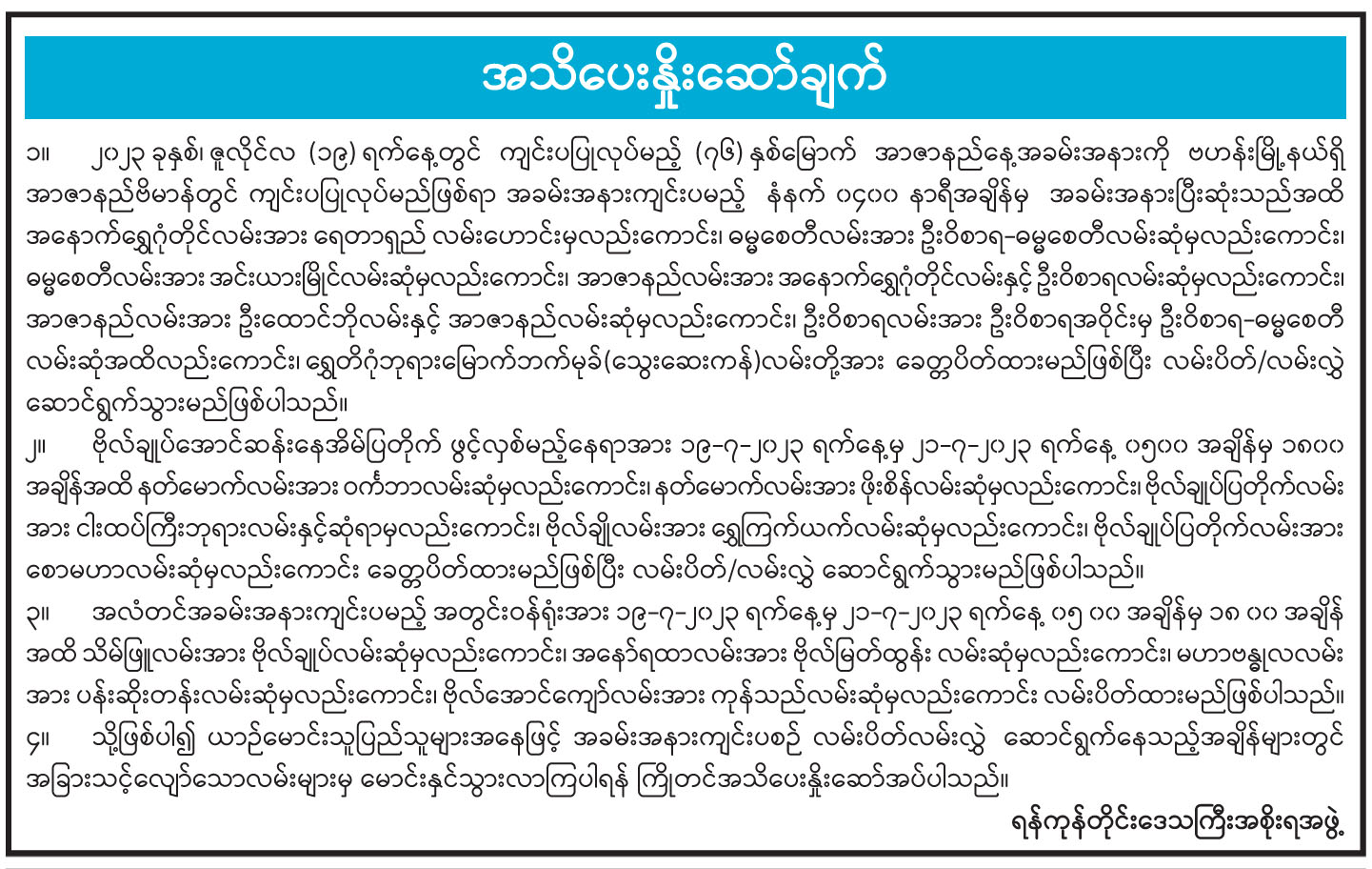 နောက်ဆုံးရ သတင်းများ
