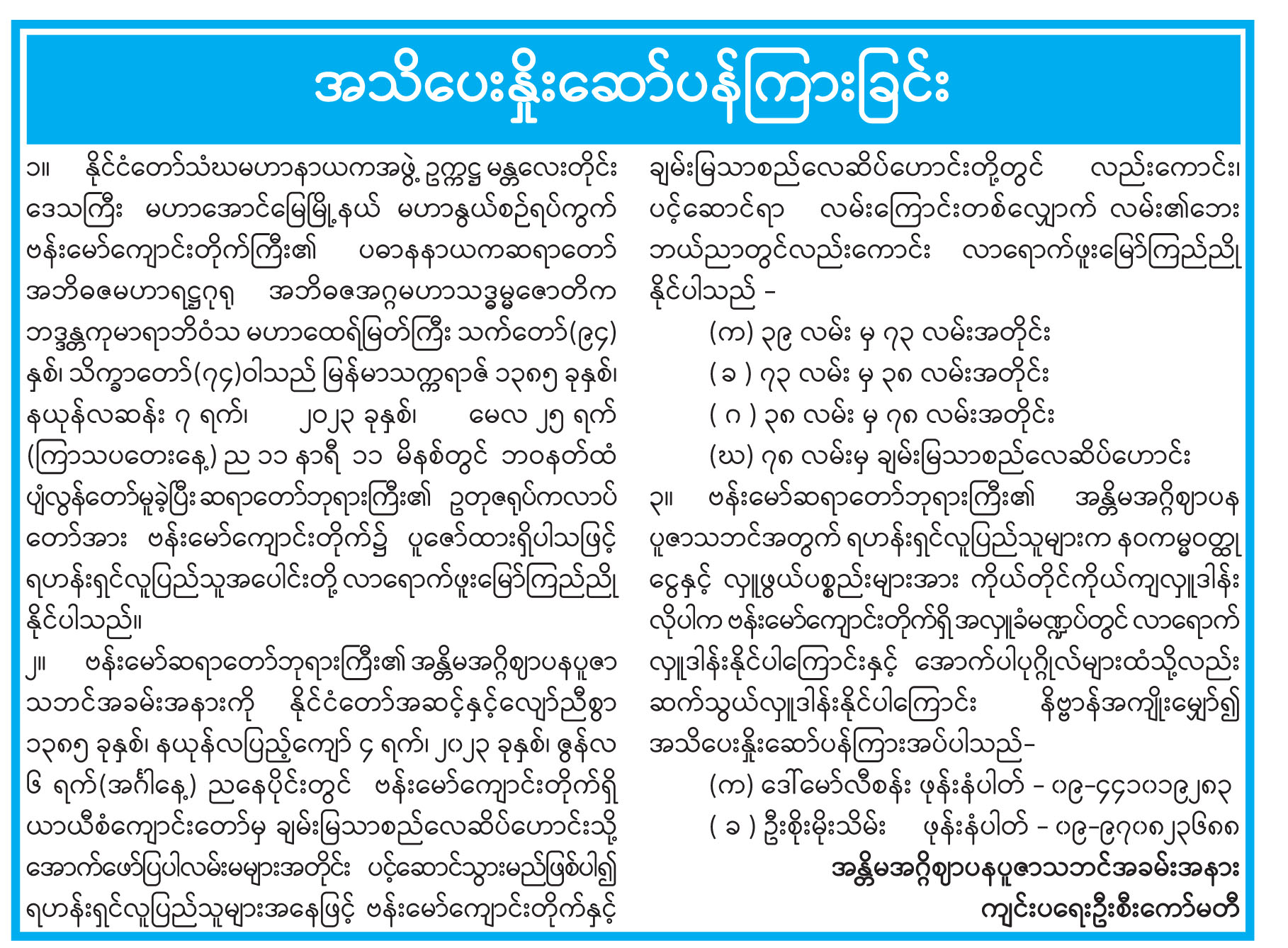 အပြည်ပြည်ဆိုင်ရာတရားရုံးမှာ ဂမ်ဘီယာနှင့် မြန်မာတို့အကြား တရားရင်ဆိုင်နေခြင်းနှင့် ပတ်သက်၍ ကြားနာပွဲတွင် မြန်မာနိုင်ငံ၏ ကိုယ်စားလှယ်၊ နိုင်ငံတော်သမ္မတရုံးဝန်ကြီးဌာန (၂) ပြည်ထောင်စု ဝန်ကြီး ဦးကိုကိုလှိုင် ပြောကြားသည့် မိန့်ခွန်း
