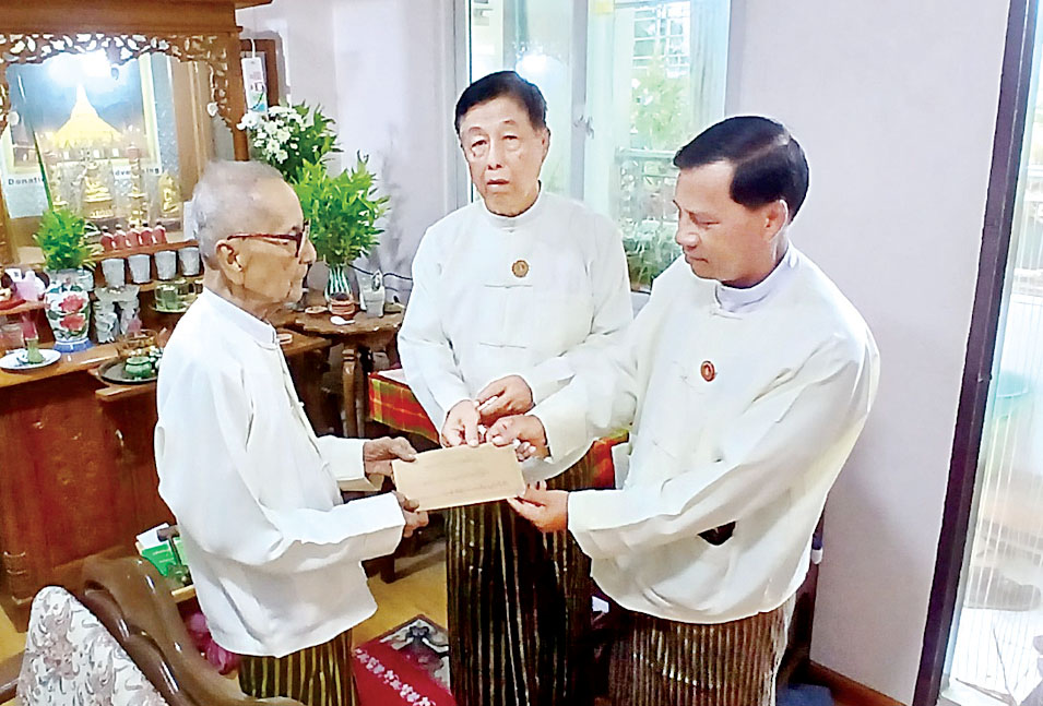 ရန်ကုန်တိုင်းဒေသကြီး အင်းစိန်မြို့နယ် စစ်မှုထမ်းဟောင်းအဖွဲ့ဝင် ဗိုလ်မှူးချစ်လွင်(အငြိမ်းစား)နှင့် လသာမြို့နယ် စစ်မှုထမ်းဟောင်းအဖွဲ့ဝင် ဒုတိယအရာခံဗိုလ်အောင်မြင့်(အငြိမ်းစား)တို့အား ရန်ကုန်တိုင်းဒေသကြီး (စည်ပင်အတွင်း) စစ်မှုထမ်းဟောင်းကြီးကြပ်ရေးအဖွဲ့ အတွင်းရေးမှူးနှင့် တာဝန်ရှိသူများက ယမန်နေ့တွင် အသက် (၁၀၀) ပြည့် ဂါရဝပြု ဂုဏ်ပြုချီးမြှင့်ငွေများ သွားရောက် ပေးအပ်ကြသည်။