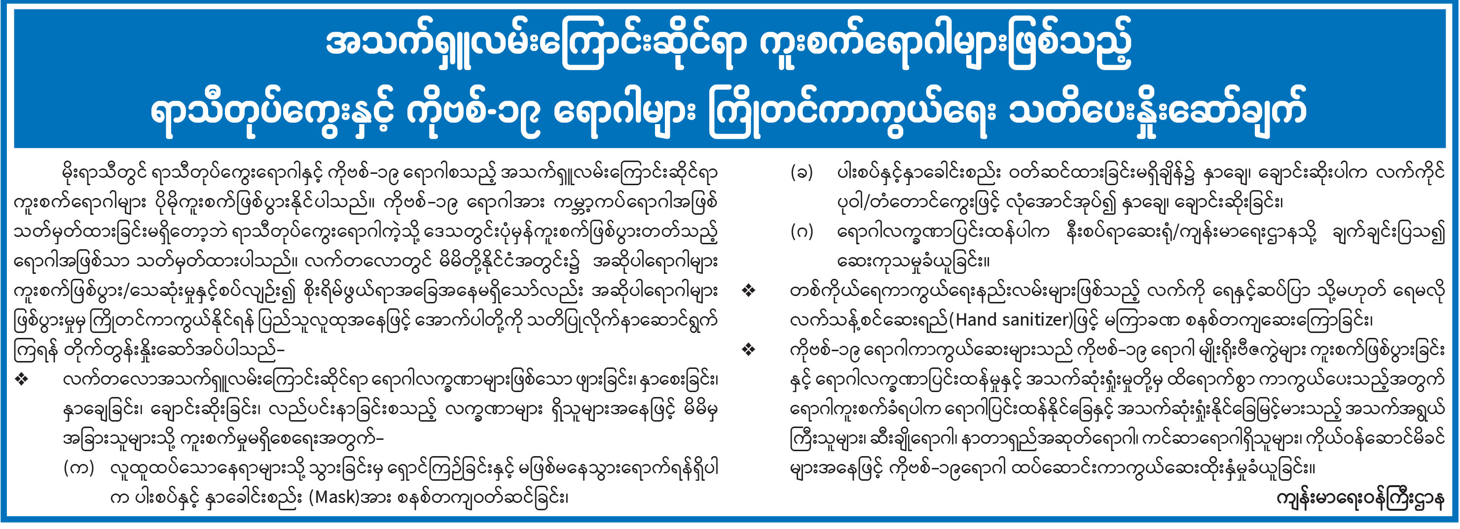 အသက်ရှုလမ်းကြောင်းဆိုင်ရာ ကူးစက်ရောဂါများဖြစ်သည့် ရာသီတုပ်ကွေးနှင့် ကိုဗစ်-၁၉ ရောဂါများ ကြိုတင်ကာကွယ်ရေး သတိပေးနှိုးဆော်ချက်