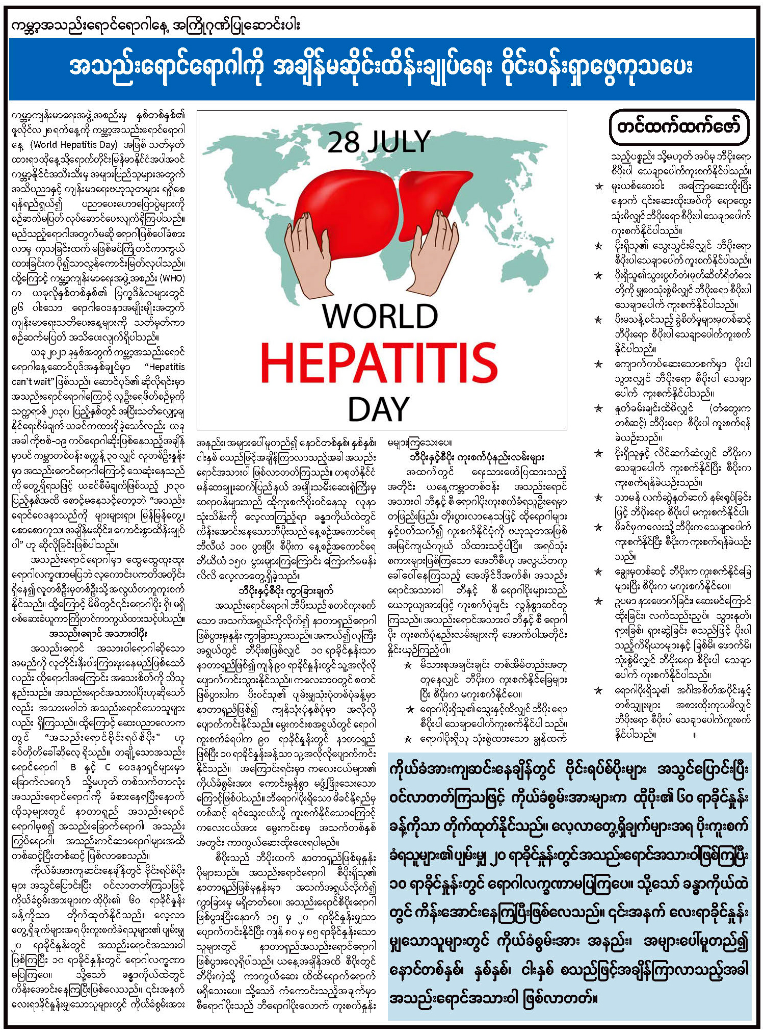 အသည်းရောင်ရောဂါကို အချိန်မဆိုင်းထိန်းချုပ်ရေး ဝိုင်းဝန်းရှာဖွေကုသပေး