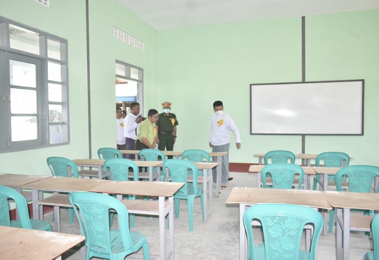 ဧရာဝတီတိုင်းဒေသကြီး ဝန်ကြီးချုပ် ဦးတင်မောင်ဝင်းနှင့်အဖွဲ့သည် မေ ၂၆ ရက် နံနက်ပိုင်းက မြန်အောင်ခရိုင်၊ အင်္ဂပူမြို့နယ် အခြေခံပညာ အထက်တန်းကျောင်း ကျောင်းဆောင်သစ်ဖွင့်ပွဲသို့ တက်ရောက်သည်။
