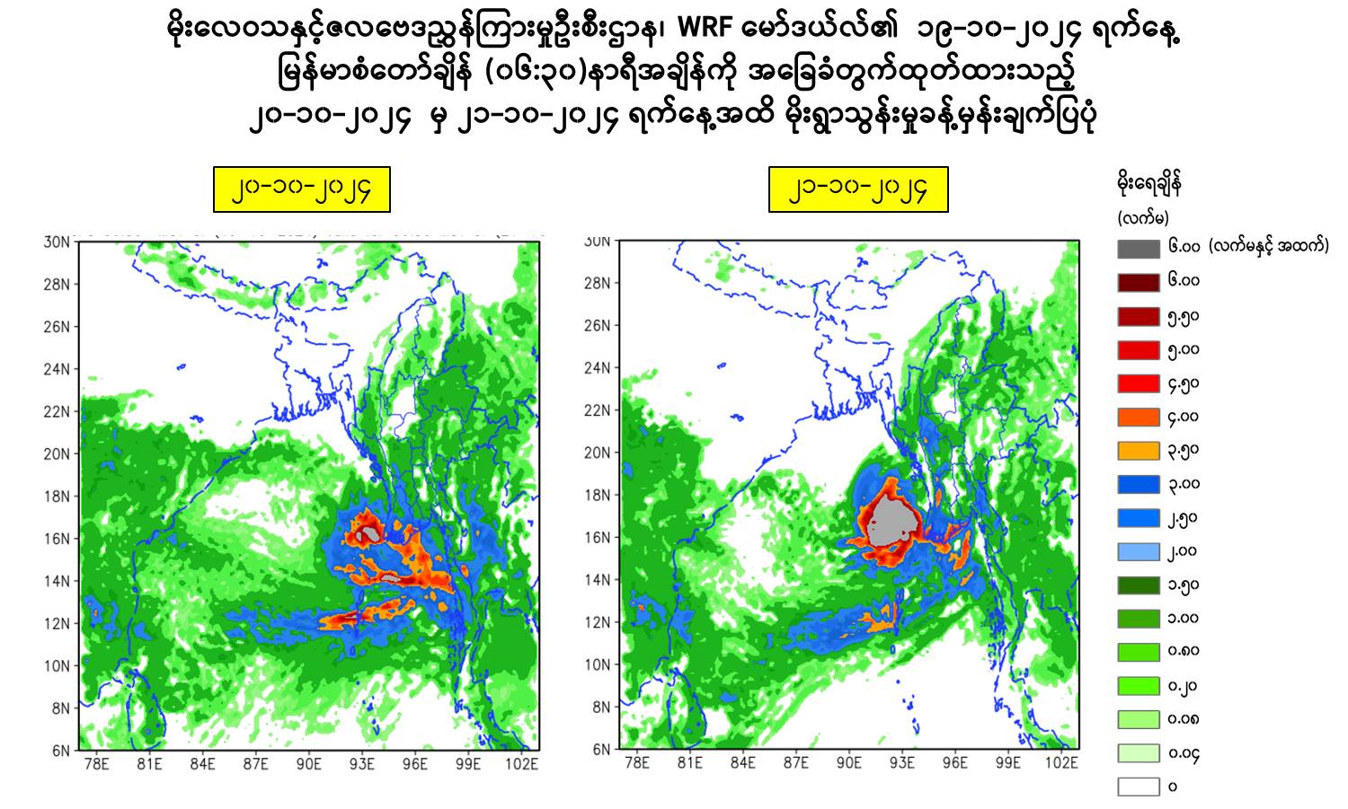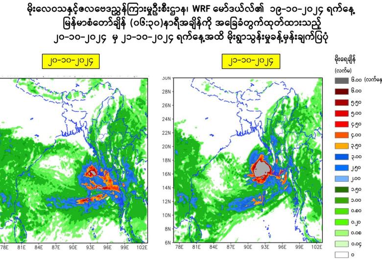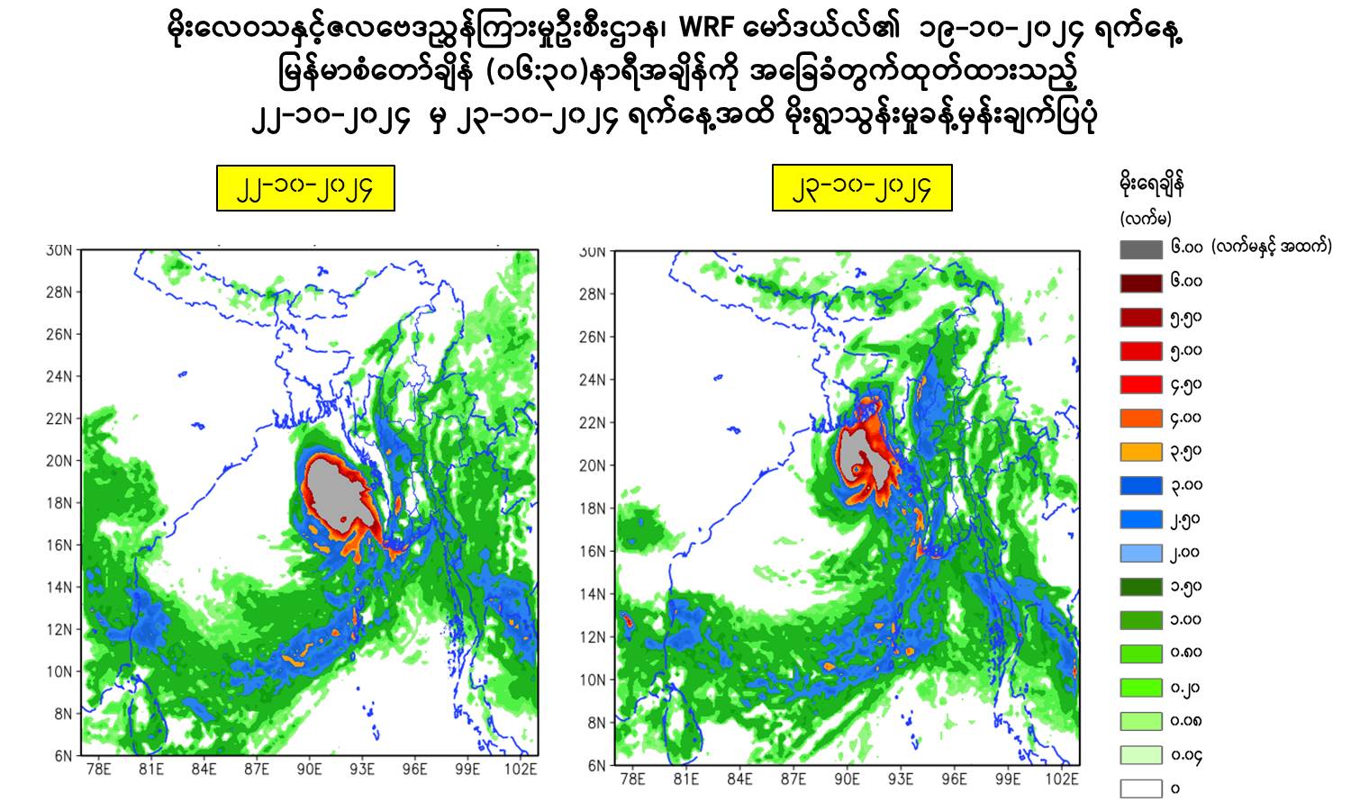 သို့ဖြစ်ပါ၍ မိုးသည်းထန်စွာ ရွာသွန်းခြင်းနှင့်အတူ လေပြင်းတိုက်ခတ်ခြင်း၊ မိုးထစ်ချုန်းခြင်း၊ မိုးကြိုးပစ်ခြင်း၊ လျှပ်စီးလက်ခြင်း၊ မိုးသီးကြွေခြင်း၊ လျှပ်တစ်ပြက်ရေကြီးခြင်းနှင့် မြေပြိုခြင်းစသည့် သဘာဝဘေးအန္တရာယ်များ ဖြစ်ပေါ်နိုင်ပါသဖြင့် အဆိုပါဒေသများရှိ ကုန်းမြင့်ဒေသအနီးတွင် နေထိုင်ကြသူများအနေဖြင့် မြေပြိုမှုအန္တရာယ်၊ မြစ်ငယ်၊ ချောင်းငယ်များအနီးတွင် နေထိုင်ကြသူများအနေဖြင့် ရေကြီး၊ ရေလျှံမှုများကို ကြိုတင်သတိပြုရှောင်ရှားနိုင်ပါရန်နှင့် ပြည်တွင်း ရေကြောင်းသွားလာရေးနှင့် လေကြောင်းပျံသန်းရေးအနေဖြင့်လည်း ကြိုတင်သတိပြုနိုင်ပါရန် သတိပေးနှိုးဆော်အပ်သည်။