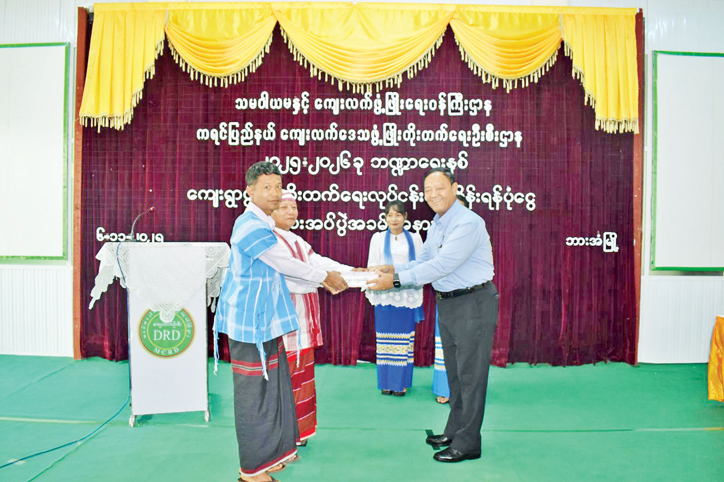 သမဝါယမနှင့် ကျေးလက်ဖွံ့ဖြိုးရေးဝန်ကြီးဌာန ပြည်ထောင်စုဝန်ကြီးဦးလှမိုးသည် ယနေ့နံနက်ပိုင်း က ဘားအံမြို့ ကျေးလက်ဒေသ ဖွံ့ဖြိုးတိုးတက်ရေးဦးစီးဌာနရုံး၌ ဘားအံ၊ လှိုင်းဘွဲ၊ သံတောင်ကြီးမြို့နယ် အတွင်းရှိ ကျေးရွာလေးရွာမှ ကျေးရွာဖွံ့ဖြိုးရေး ကော်မတီဝင်များ၊ ဌာနဆိုင်ရာဝန်ထမ်းများနှင့် တွေ့ဆုံပြီး ဝန်ကြီးဌာနက အကောင်အထည်ဖော် ဆောင်ရွက်လျက်ရှိသည့် ကျေးလက်ဒေသဖွံ့ဖြိုး တိုးတက်ရေးလုပ်ငန်းဆိုင်ရာများကို ရှင်းလင်း ပြောကြားကာ ကျေးရွာလေးရွာအတွက် ၂၀၂၅-၂၀၂၆ ဘဏ္ဍာနှစ် ကျေးရွာဖွံ့ဖြိုးရေးစီမံကိန်း(VDP) ရန်ပုံငွေကျပ် သိန်း ၆၀၀ ပေးအပ်သည်။