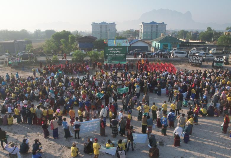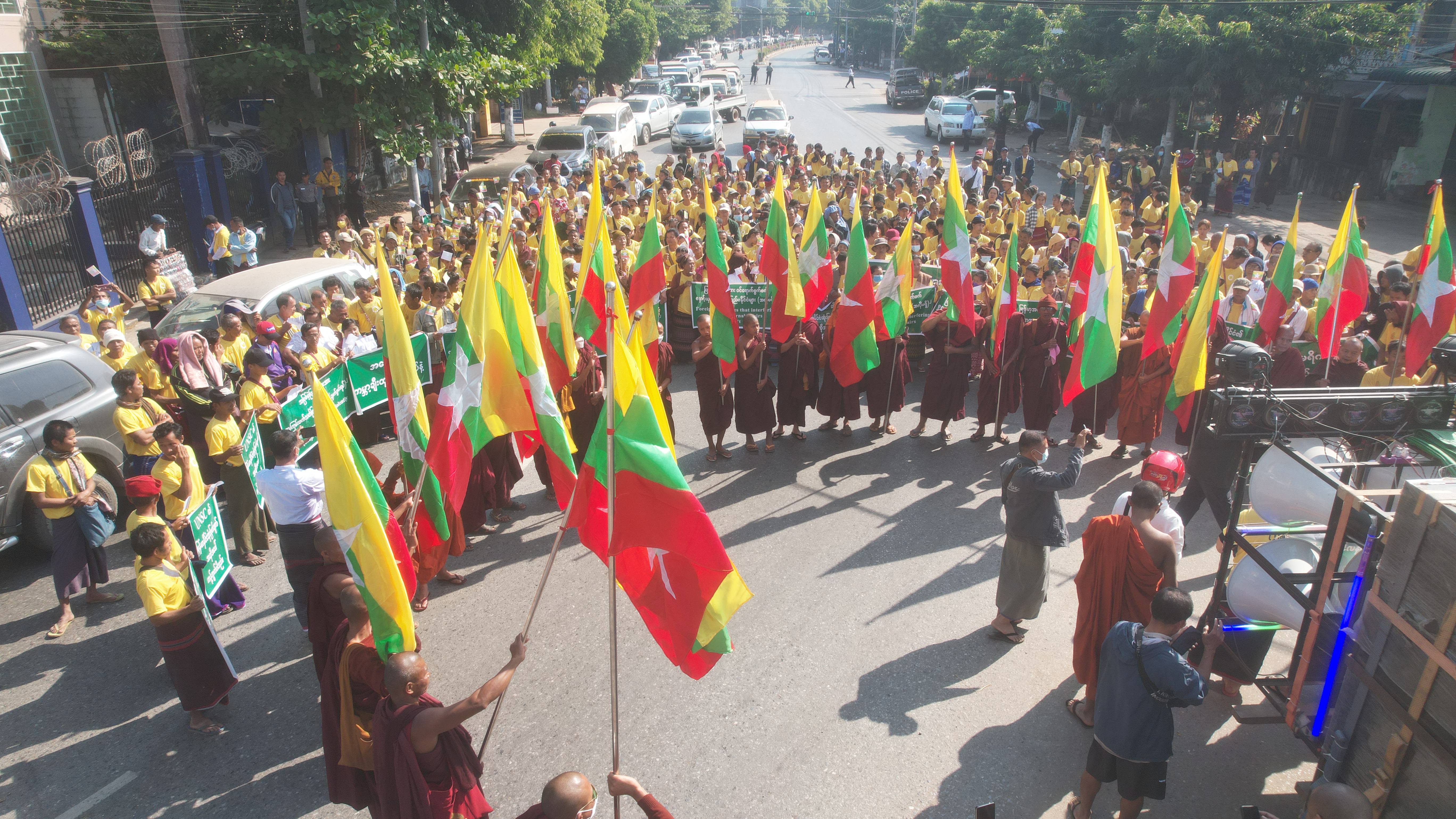 အဆိုပါ ကုလသမဂ္ဂလုံခြုံရေးကောင်စီ၏ မြန်မာနိုင်ငံဆိုင်ရာ ဆုံးဖြတ်ချက် အဆိုနှင့် ပတ်သက်၍ ကန့်ကွက်ရှုတ်ချ ဆန္ဒထုတ်ဖော်ပွဲကို ယနေ့ နံနက်ပိုင်းတွင် ကရင်ပြည်နယ် ဘားအံမြို့ ဇွဲကပင် အားကစား ကွင်း၌ ဒေသခံပြည်သူများ စုပေါင်း၍ ကုလသမဂ္ဂလုံခြုံရေး ကောင်စီ၏ မြန်မာနိုင်ငံ အပေါ်တစ်ဖက်သတ် ဆုံးဖြတ်ချက်များအား ဆန့်ကျင်ရှုတ်ချပါသည်၊ အမေရိကန်ကမ္ဘာ့ချီးထုပ် ဝင်မရှုပ်နဲ့၊ ပြည်တွင်းရေးရာ ဝင်ရောက် စွတ်ဖက် နှောင့်ယှက်နေသော ပြည်ပနိုင်ငံများအား (အလိုမရှိ)၊ အကြမ်းဖက် အားပေး ပြည်ပ နိုင်ငံများအား (အလိုမရှိ)၊ အကြမ်းဖက် NUG PDF (အလိုမရှိ)၊ ကုလသမဂ္ဂ လုံခြုံရေးကောင်စီ၏ တစ်ဖက်သတ် ဆုံးဖြတ် ချက်များအား (ဆန့်ကျင်ကြ)၊ မြန်မာ့အရေးကို မြန်မာနိုင်ငံကသာ ဖြေရှင်းရေး (ဒို့အရေး)၊ အပြစ်မဲ့ ပြည်သူများအား အကြမ်းဖက်သတ်ဖြတ် နေသည်များအား (ချက်ချင်းရပ်)၊ ကုလသမဂ္ဂသည် နိုင်ငံတကာ အစိုးရမဟုတ်ပါ၊ မြန်မာ့အရေးသည် နိုင်ငံတကာလုံခြုံရေးကို ခြိမ်းခြောက်မှု မဟုတ်ပါ၊ UNSC ၏ မြန်မာနိုင်ငံ ဆုံးဖြတ်ချက်အပေါ် ကန့်ကွက်ပါသည်၊ မြန်မာနိုင်ငံ၏ အချုပ်အခြာအာဏာကို ထိပါးသည့်အကြံ ဒို့လက်မခံ စသည့် ကြွေးကြော်သံများ ကြွေးကြော်၍ ပိုစတာများ၊ ဆိုင်းဘုတ်များ ကိုင်ဆောင်ကာ ဇွဲကပင် အားကစားကွင်းမှ မဲဘောင်မီးပွိုင့် လမ်းဆုံ၊ နာရီစင်၊ BOC ကွေ့၊ ကမ်းနားလမ်း၊ ကူးဆိပ်လမ်း၊ မဲဘောင် ဘုန်းကြီး ကျောင်းလမ်းမှ နာရီစင်အထိ လူအင်အား (၁၈၀၀) ဖြင့် ငြိမ်းချမ်းစွာ ဆန္ဒထုတ်ဖော်ခဲ့ကြ ကြောင်းသိရသည်။