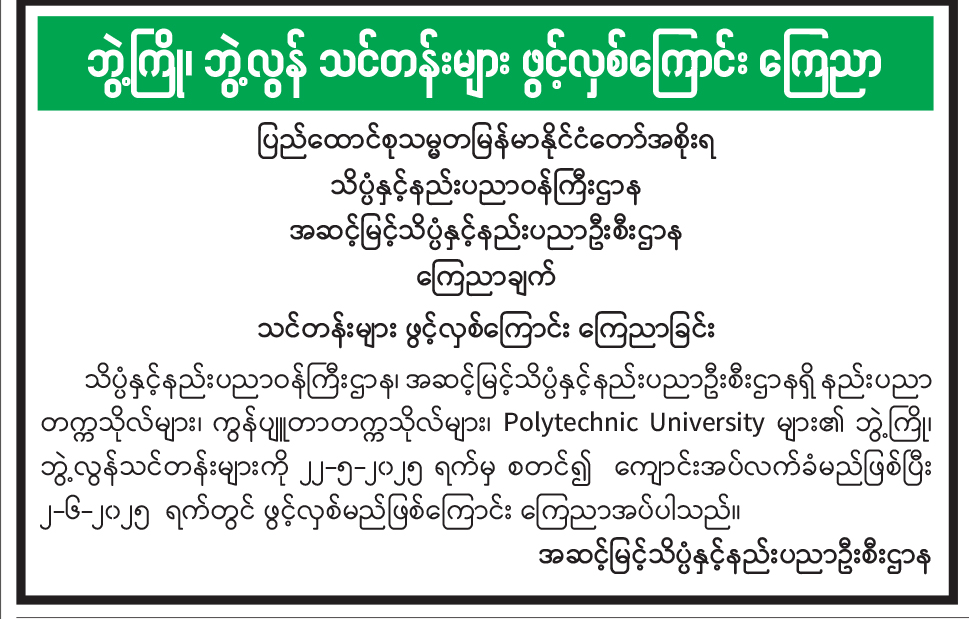 ဘွဲ့ကြို၊ ဘွဲ့လွန် သင်တန်းများ ဖွင့်လှစ်ကြောင်း ကြေညာ