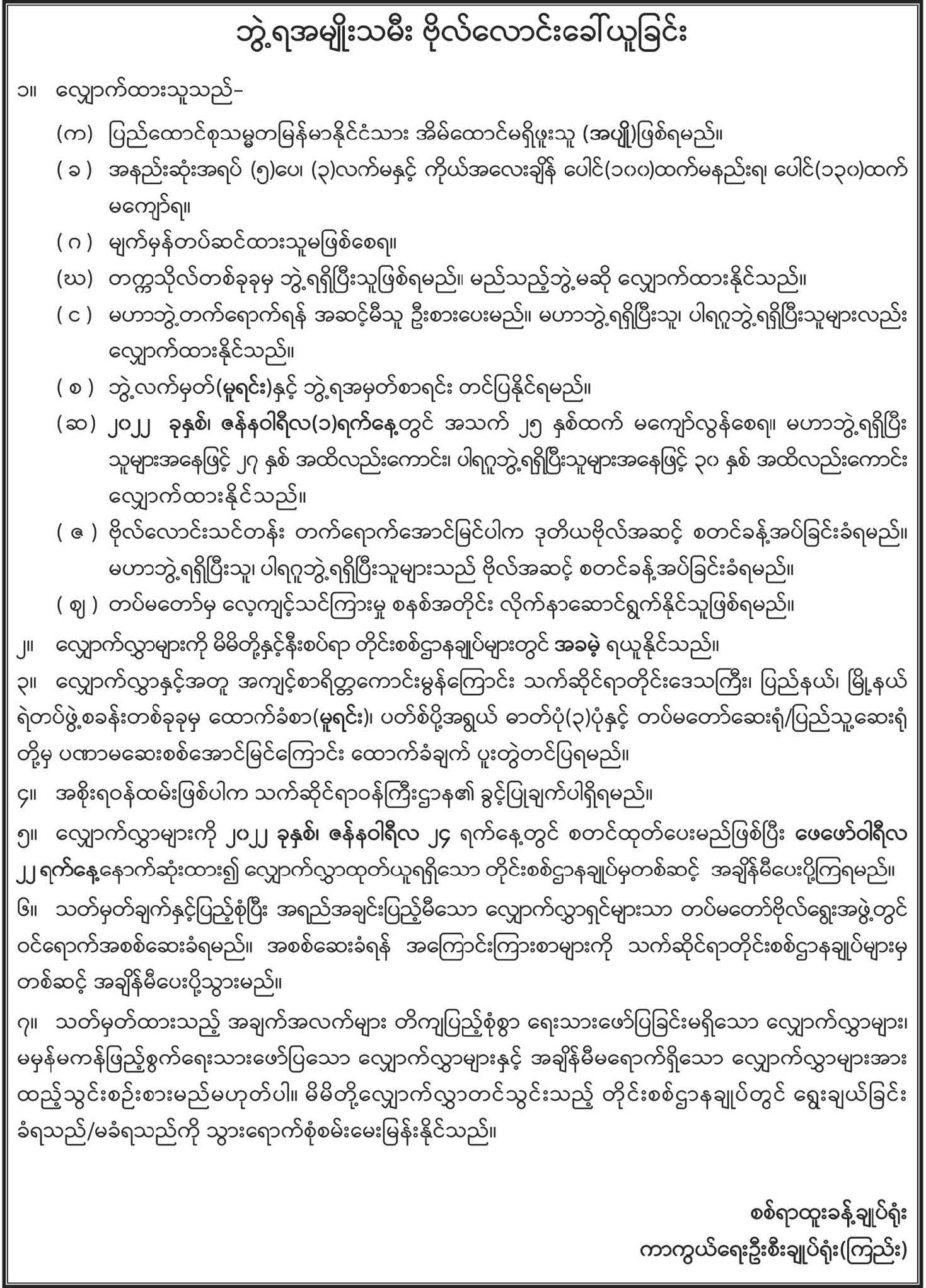 ဝါးခယ်မမြို့နယ်အတွင်းသို့ ယာယီရွှေ့ပြောင်းနေထိုင်သူ ပြည်သူများအား သုံးလစာ ထောက်ပံ့ငွေနှင့် ပစ္စည်းများပေးအပ်