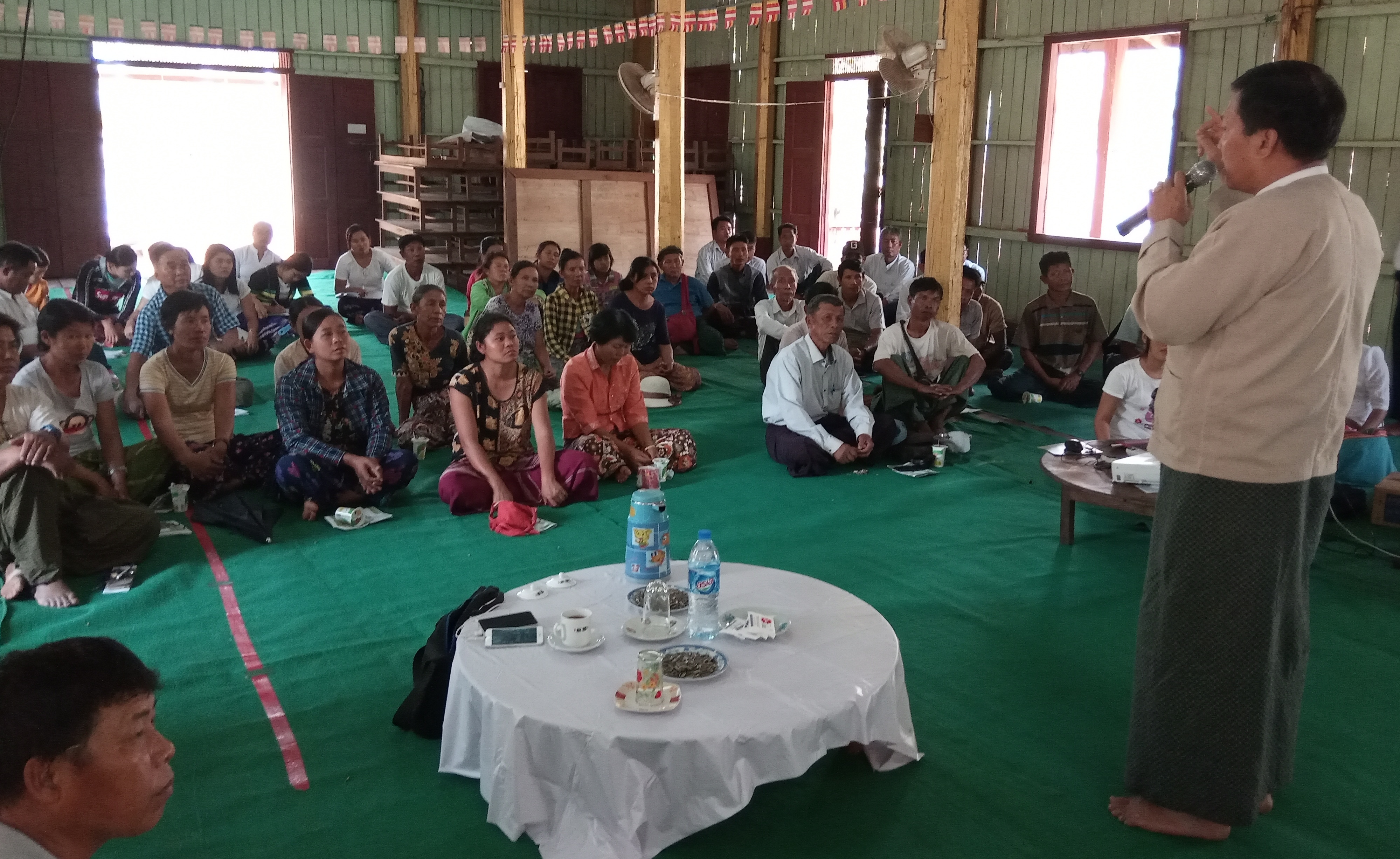 ရှေးဦးစွာ ပြည်နယ်စိုက်ပျိုးရေးဦးစီးဌာန ဒုတိယပြည်နယ်မှူးက (Fall Armywor) ငမြောင်တောင်ပိုး ကျရောက်သည့်လက္ခဏာများနှင့် အဆင်ဆင့် ဆောင်ရွက်ရပုံကို ရှင်းလင်းဆွေးနွေးပြီး ပြည်နယ်စိုက်ပျိုးရေးဦးစီးမှူး ဦးမျိုးခန့်မှ ထပ်ဆင့်ရှင်းလင်း ပြောကြားခဲ့သည်။ ယင်းနောက် ပြည်နယ်ပိုးမွှားတာဝန်ခံ ဒေါ်ဝါဝါရွေက မျိုးစိတ်ပျံ့ပွားစေသော ပြသာနာ၊ မူရင်းဒေသနှင့် ပျံ့နှံ့ပုံ၊ စားသောက်ပျက်စီးသော အပင်များ၊ ငမြောင်ပိုး၏ ဘဝစက်ဝန်း၊ (ဖော)လောက်ကောင်ကို ကွင်းဆင်းခွဲခြားခြင်း၊ ဖလံကောင်ကိုခွဲခြားခြင်း၊ ငမြောင်တောင်ဖျက်ဆီးပုံ လက္ခဏာများ၊ ဇီဝနည်းဖြင့် ကာကွယ်ခြင်း၊ စိုက်နည်းစနစ်ဖြင့် ကာကွယ်ခြင်း စသည့်အကြောင်းအချက်များကို ဆွေးနွေးရှင်းလင်းခဲ့ရာ တက်ရောက်လာသော တောင်သူများက သိရှိလိုသည်များ မေးမြန်းရာ တာဝန်ရှိသူများက ပြန်လည်ရှင်းလင်း ဖြေကြားခဲ့သည်။