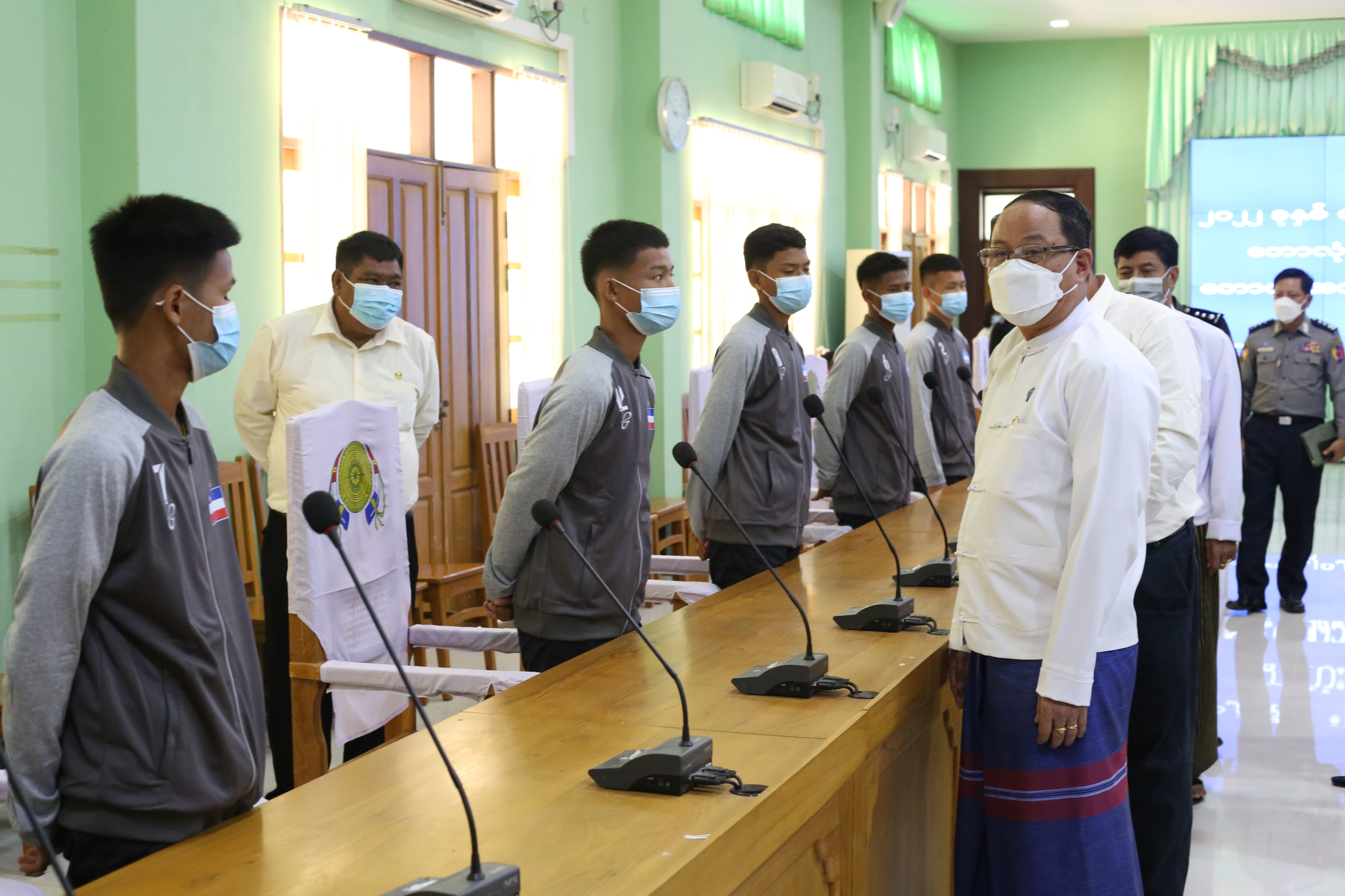 ယင်းနောက် ပြည်နယ်ဝန်ကြီးချုပ်၊ ပြည်နယ်တရားလွှတ်တော် တရားသူကြီးချုပ် ဒေါ်ခင်ဆွေထွန်း၊ ပြည်နယ်အစိုးရအဖွဲ့ဝင်များနှင့် တာဝန်ရှိသူများက ဘောလုံးအားကစားသမားများအား ရင်းရင်းနှီးနှီးတွေ့ဆုံ၍ အားပေးစကားများ ပြောကြားခဲ့သည်။