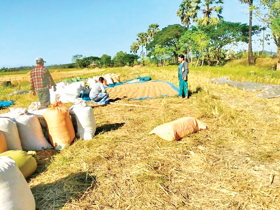 ဘီးလင်းမြို့နယ် သမဝါယမဦးစီးဌာနမှ တာဝန်ရှိသူများသည် ယနေ့နံနက်ပိုင်းက ဘီးလင်းမြို့နယ် ရွှေလှေကျေးရွာ ရွှေဝါမြေ(လယ်/ထွေ)သမဝါယမအသင်းသားများ စိုက်ပျိုးထားသည့် ဂျပန်ရွှေဝါထွန်း မိုးစပါးများ ရိတ်သိမ်းမှုအခြေအနေများကို ကြည့်ရှုစစ်ဆေးသည်။
