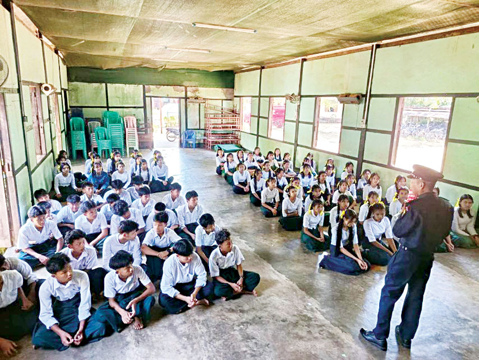 ဦးစွာ ဘီးလင်းမြို့နယ် မီးသတ်ဦးစီးဌာနမှ ရွှေလှေနယ်မြေ မီးသတ်စခန်းမှူး ဦးမင်းမင်းအောင်က ကျောင်းသား ကျောင်းသူများအား မီးဘေးအန္တရာယ် ကြိုတင်ကာကွယ်ရေးနှင့်ပတ်သက်၍ အသိပညာပေး ဟောပြောသည်။