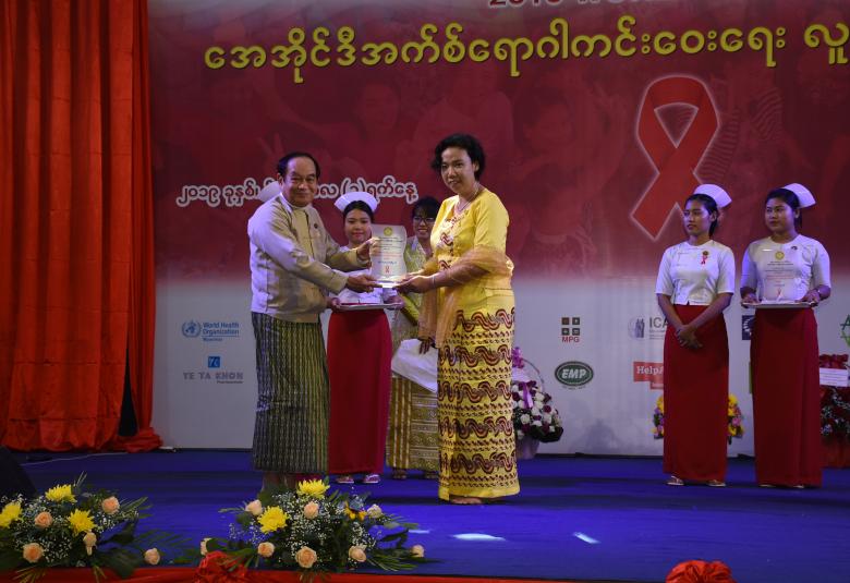 ယင်းနောက်၂၀၁၉ ခုနှစ်ကမ္ဘာ့ခုခံအားကျဆင်းမှု ကူးစက်ရောဂါတိုက်ဖျက်ရေးနေ့ အထိမ်းအမှတ် အဖြစ် HIV ကာကွယ်ရေးလုပ်ငန်းများတွင် တက်ကြွလှုပ်ရှားမှု ထူးချွန်ဆုရမြို့နယ်များအား လည်းကောင်း၊ အထက်တန်းအဆင့် စာစီစာကုံးပြိုင်ပွဲနှင့် အလယ်တန်းအဆင့် ပန်းချီပြိုင်ပွဲတို့တွင် ထူးချွန်ဆု ရကျောင်းသား/ကျောင်းသူများအား လည်းကောင်း၊ ဉာဏ်စမ်း ဗဟုသုတပြိုင်ပွဲများတွင် ထူးချွန်ဆုရ မိခင်နှင့် ကလေးစောင့်ရှောက်ရေးအသင်းဝင်များနှင့် အခြေခံကျန်းမာရေး ဝန်ထမ်းများအား လည်းကောင်း၊ ပညာပေးပြခန်း အကောင်းဆုံးပြင်ဆင်နိုင်မှုဆုအား လည်းကောင်း ချီးမြှင့်ပေးခဲ့ကြသည်။ ထို့နောက် PUAMI Theme Song ဖြင့် ဖျော်ဖြေခဲ့သည်။