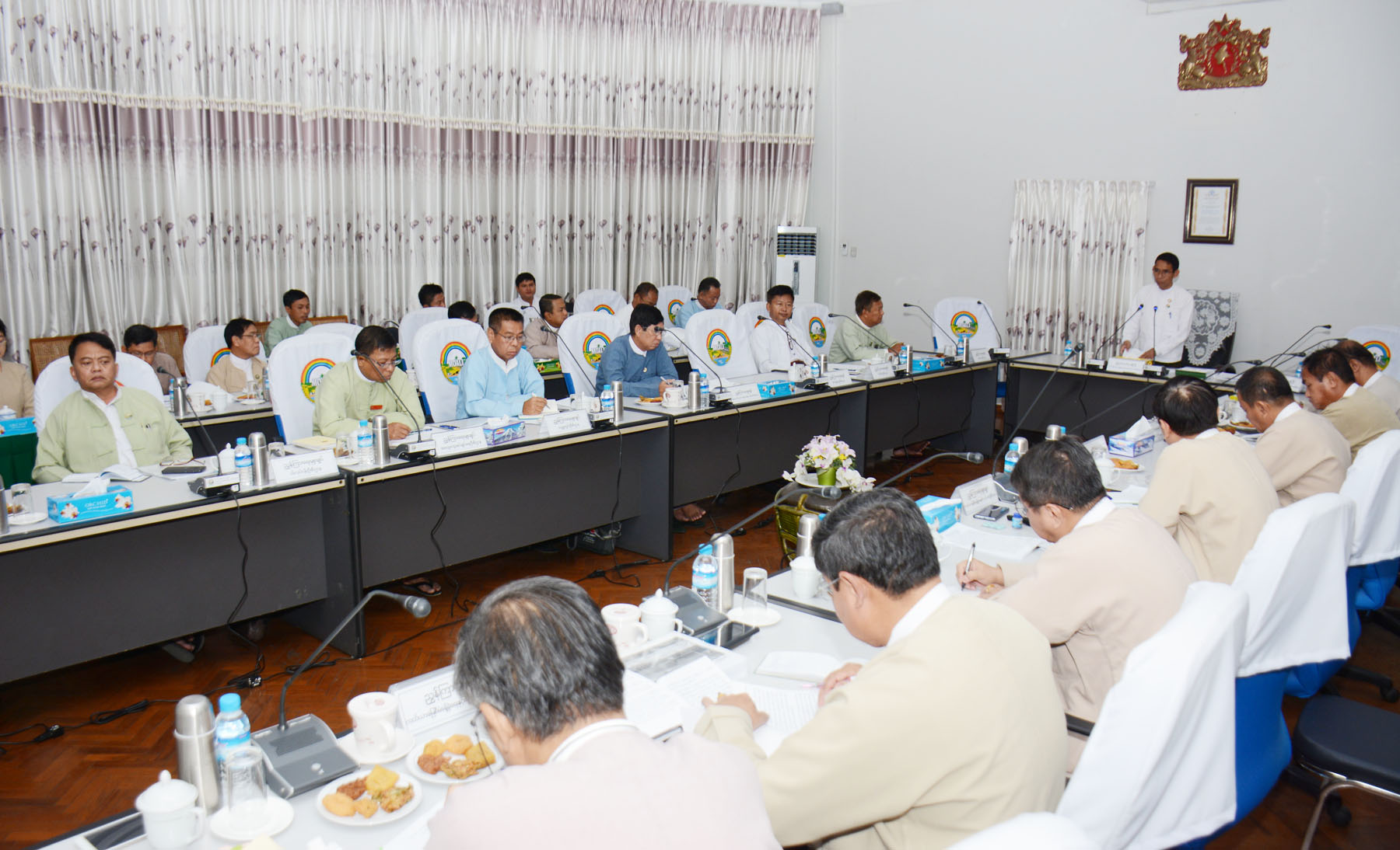 အစည်းအဝေးသို့ ဗဟိုလယ်ယာမြေစီမံခန့်ခွဲမှုအဖွဲ့ဥက္ကဌနှင့် အဖွဲ့ဝင်များ တက်ရောက်ကြပြီး အတွင်းရေးမှူး ညွှန်ကြားရေးမှူးချုပ် ဦးသက်နိုင်ဦးက နိုင်ငံတော် စီမံကိန်းများဆောင်ရွက်ရာတွင် သိမ်းယူခံရသည့် လယ်ယာမြေများအတွက် နစ်နာ ကြေးနှင့် လျော်ကြေးပေးချေရန်ကိစ္စရပ်များ၊ တိုင်းဒေသကြီး/ ပြည်နယ်များမှ လယ်ယာမြေအခြားနည်းအသုံးပြုခွင့် လျှောက်ထားလာမှုကိစ္စရပ် များနှင့်စပ်လျဉ်း၍ ဆွေးနွေးဆုံးဖြတ်ရမည့် လုပ်ငန်းကဏ္ဍများအလိုက် ရှင်းလင်းတင်ပြသည်။
