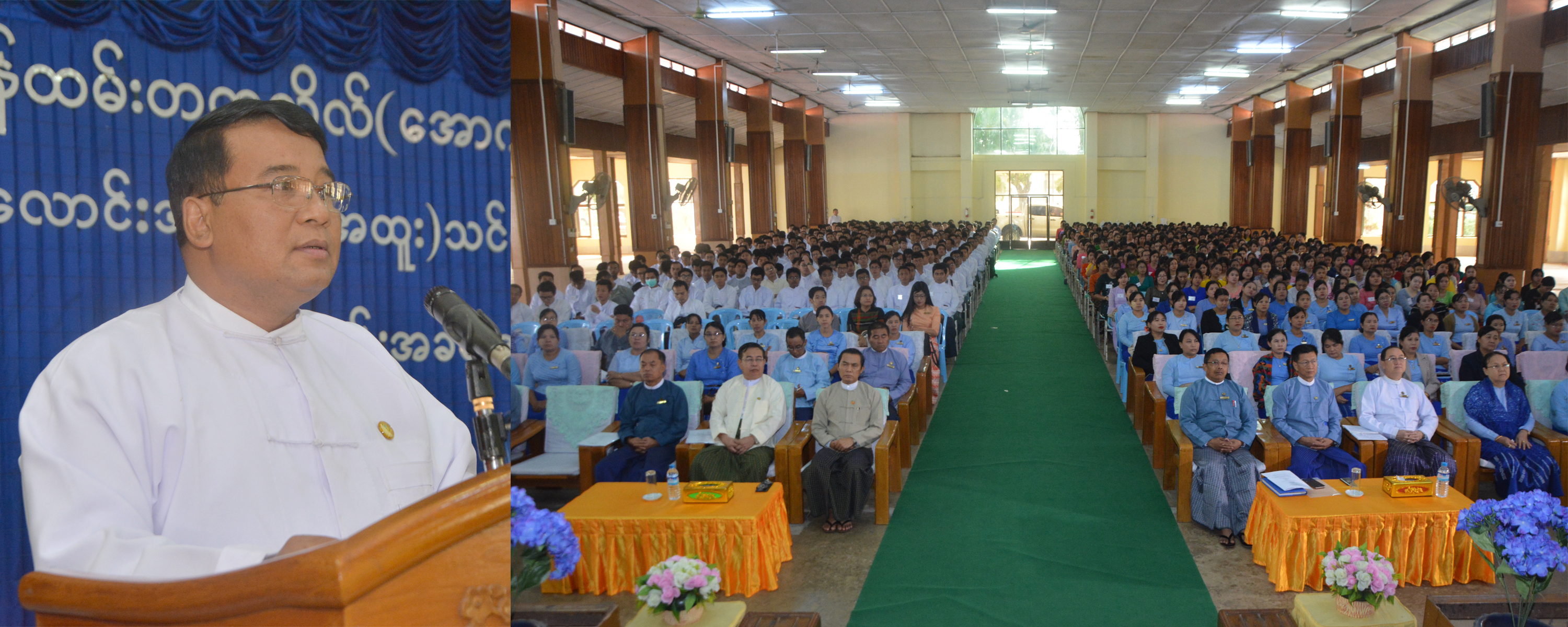 အခမ်းအနားတွင် ကျန်းမာရေးနှင့်အားကစားဝန်ကြီးဌာန၊ ပြည်သူ့ကျန်းမာရေးဦးစီးဌာနနှင့် ကုသရေးဦးစီးဌာနမှ ခေတ္တညွှန်ကြားရေးမှူးချုပ် ဒေါက်တာ စိုးဦးက သင်တန်းကာလအတွင်း သက်ဆိုင်ရာဦးစီးဌာန အသီးသီးမှ တာဝန်ရှိပုဂ္ဂိုလ်များက ဦးစီးဌာနများ၏ ဖွဲ့စည်းပုံလုပ်ငန်းတာဝန်များ၊ ဆောင်ရွက်လျက်ရှိသော လုပ်ငန်းများ၊ စီမံချက်များ၊ ဝန်ထမ်းများ၏ တာဝန်ဝတ္တရားများ လုပ်ငန်းခွင်အသုံးချပညာရပ်များအား သင်ကြားပို့ချခဲ့ပြီးဖြစ်သည့်အတွက် လက်ထောက်ဆရာဝန်၊ သွားဘက်ဆိုင်ရာ ဆရာဝန်များအနေဖြင့် မိမိတို့တာဝန်ကျရာ နေရာများတွင် ပြည်သူလူထုကို ကျန်းမာရေး စောင့်ရှောက်မှုများ အပြည့်အဝပေးနိုင်ရေး ပြည်သူများ၏ ကျန်းမာရေး အဆင့်မြှင့်တင်နိုင်ရေး၊ နိုင်ငံတော်၏ မျှော်မှန်းချက်ဖြစ်သည့် တစ်မျိုးသားလုံး ကျန်းမာရေးစောင့်ရှောက်မှု၊ လွှမ်းခြုံမှု Universal Health Coverage(UHC)ကို အကောင်အထည်ဖော်ရာတွင် မိမိတို့တာဝန်ကျရာကဏ္ဍမှ အပြည့်အဝပါဝင်ပြီး နိုင်ငံတော် ဖွံ့ဖြိုးတိုးတက်ရေးကို ပါဝင်ဆောင်ရွက်နိုင်မည်ဟု အပြည့်အဝယုံကြည်ကြောင်း ပြောကြားသည်။