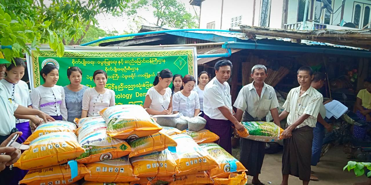 ပဲခူးတိုင်းဒေသကြီး၊ ပဲခူးခရိုင်ကဝမြို့နယ် ရှမ်းကန်ကျေးရွာအုပ်စုရှိ ဘက်စုံအဆင့်မြင့်နည်း ပညာသုံး စံပြကျေးရွာတွင် ဆောင်ရွက်မည့် တောင်သူများအား မျိုးစပါးနှင့် သစ်စိမ်းမြေဩဇာများကို တောင်သူများလက်ဝယ်သို့ ကဝမြို့နယ် စိုက်ပျိုးရေးဦးစီးဌာန၊ မြို့နယ်ဦးစီးမှူး ဦးထွန်းထွန်းဝင်းမှ ပေးအပ်ခဲ့ပါသည်။