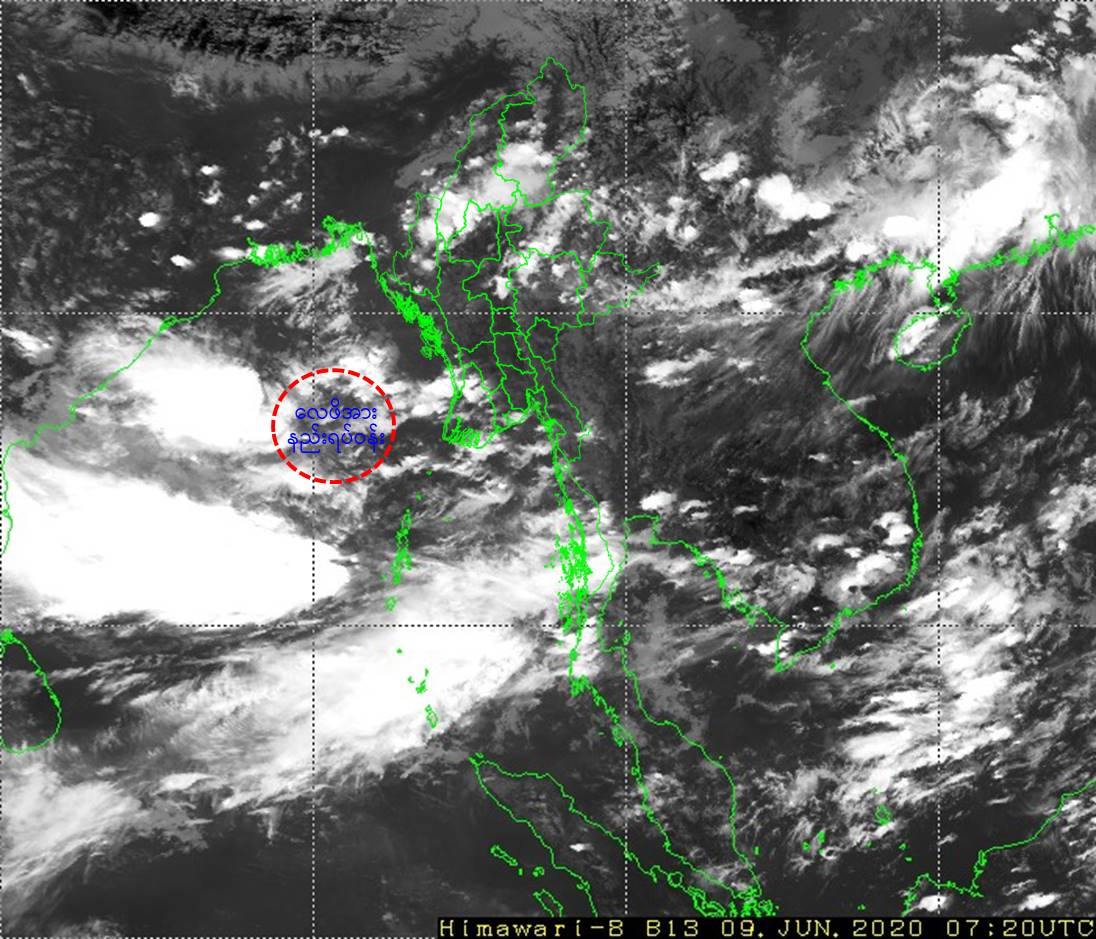 "ယနေ့မြန်မာစံတော်ချိန် (၁၃:၃၀)နာရီအချိန် တိုင်းထွာချက်များအရ ဘင်္ဂလား ပင်လယ်အော် အရှေ့အလယ်ပိုင်းတွင် လေဖိအားနည်းရပ်ဝန်းတစ်ခု ဖြစ်ပေါ်နေပါသည်။ အဆိုပါ လေဖိအား နည်းရပ်ဝန်းသည် နောက်(၄၈)နာရီအတွင်း ပိုမိုအားကောင်းလာနိုင်သည်ဟု ခန့်မှန်းရပါသည်။ "