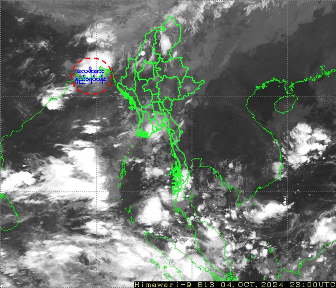 မိုးလေဝသနှင့်ဇလဗေဒ ညွှန်ကြားမှုဦးစီးဌာနက ယနေ့နံနက်ထုတ်ပြန်သည့် မိုးလေဝသသတင်းအရ    ဘင်္ဂလား ပင်လယ်အော်မြောက်ပိုင်းနှင့် ယင်းနှင့်ဆက်စပ်လျက်ရှိသော ဘင်္ဂလားဒေ့ရှ်နိုင်ငံ ကမ်းရိုးတန်းနှင့် အိန္ဒိယနိုင်ငံ၊ အနောက်ဘင်္ဂလားပြည်နယ်တို့တွင် ဖြစ်ပေါ်နေသော လေဖိအားနည်းရပ်ဝန်း (Low Pressure Area) သည် ဆက်လက်တည်ရှိနေသည်။ ဘင်္ဂလားပင်လယ်အော် အရှေ့မြောက်ပိုင်းတွင် တိမ်အသင့်အတင့် ဖြစ်ထွန်းနေပြီး၊ ကပ္ပလီ ပင်လယ်ပြင်နှင့် ကျန်ဘင်္ဂလားပင်လယ်အော်တို့တွင် မုတ်သုံလေ အားအနည်းငယ်မှ အားအသင့်အတင့် ရှိနေသည်။